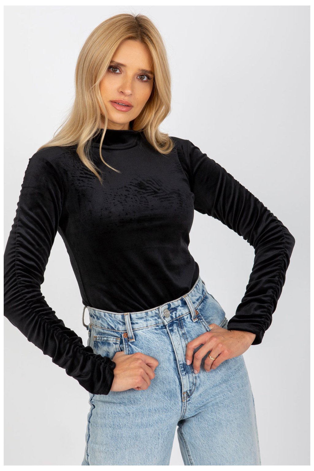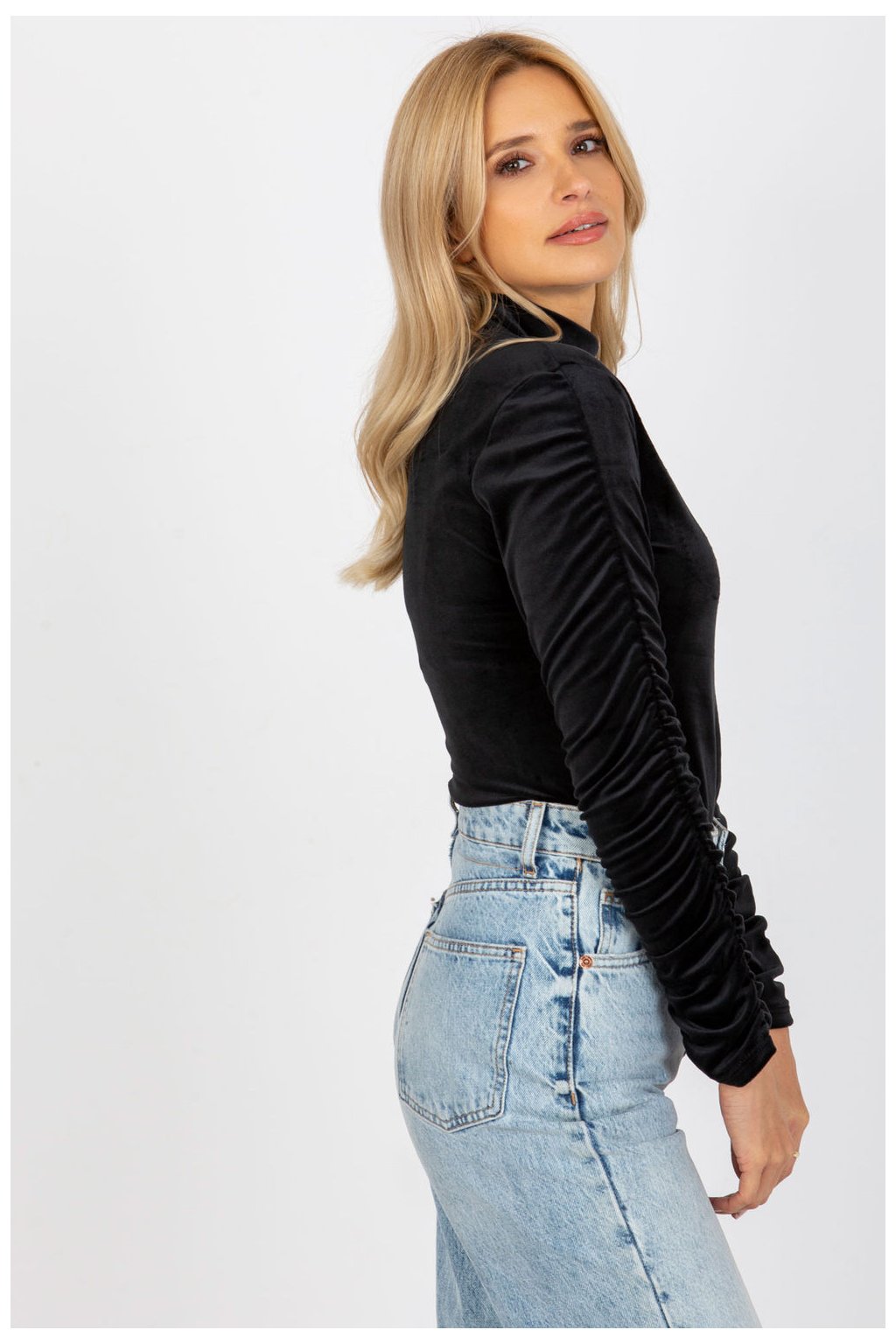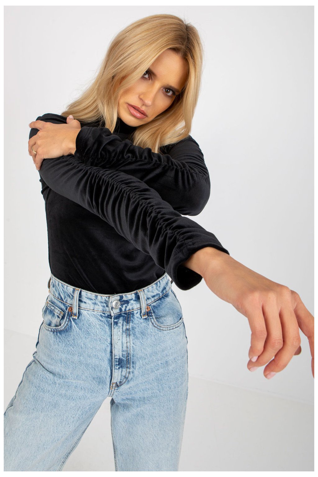 Velurová halenka s dlouhými rukávy a stojáčkem. Rukávy zdobené řasením.