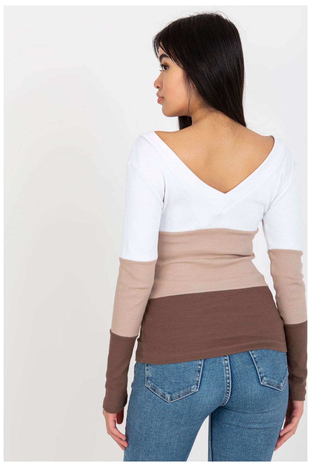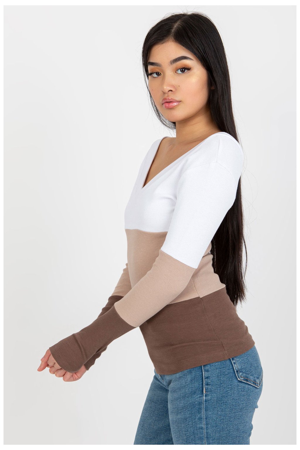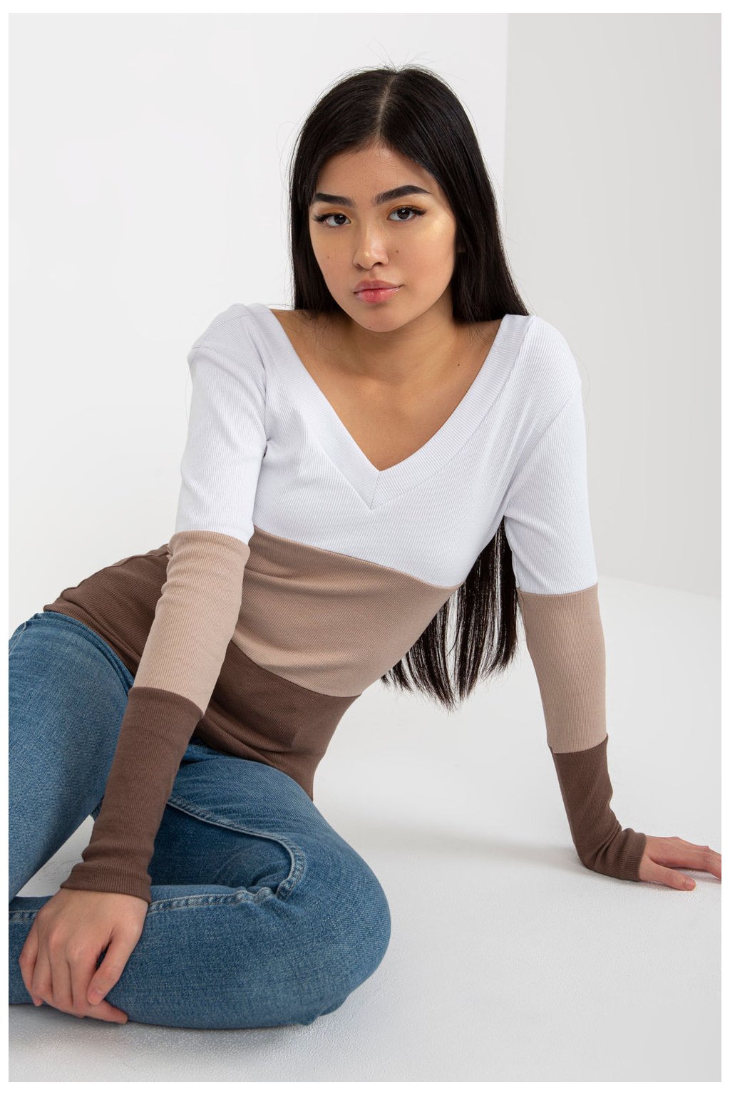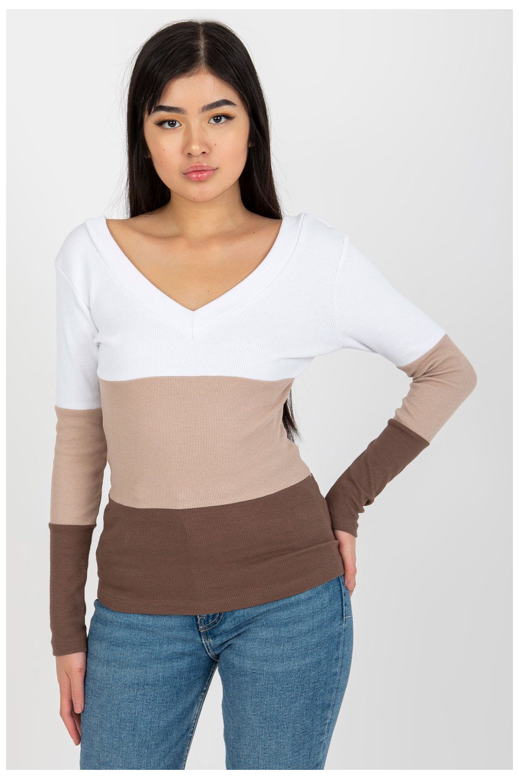 Halenka s dlouhými rukávy a srdíčkovým výstřihem. Halenka z žebrované tkaniny ve třech barvách.