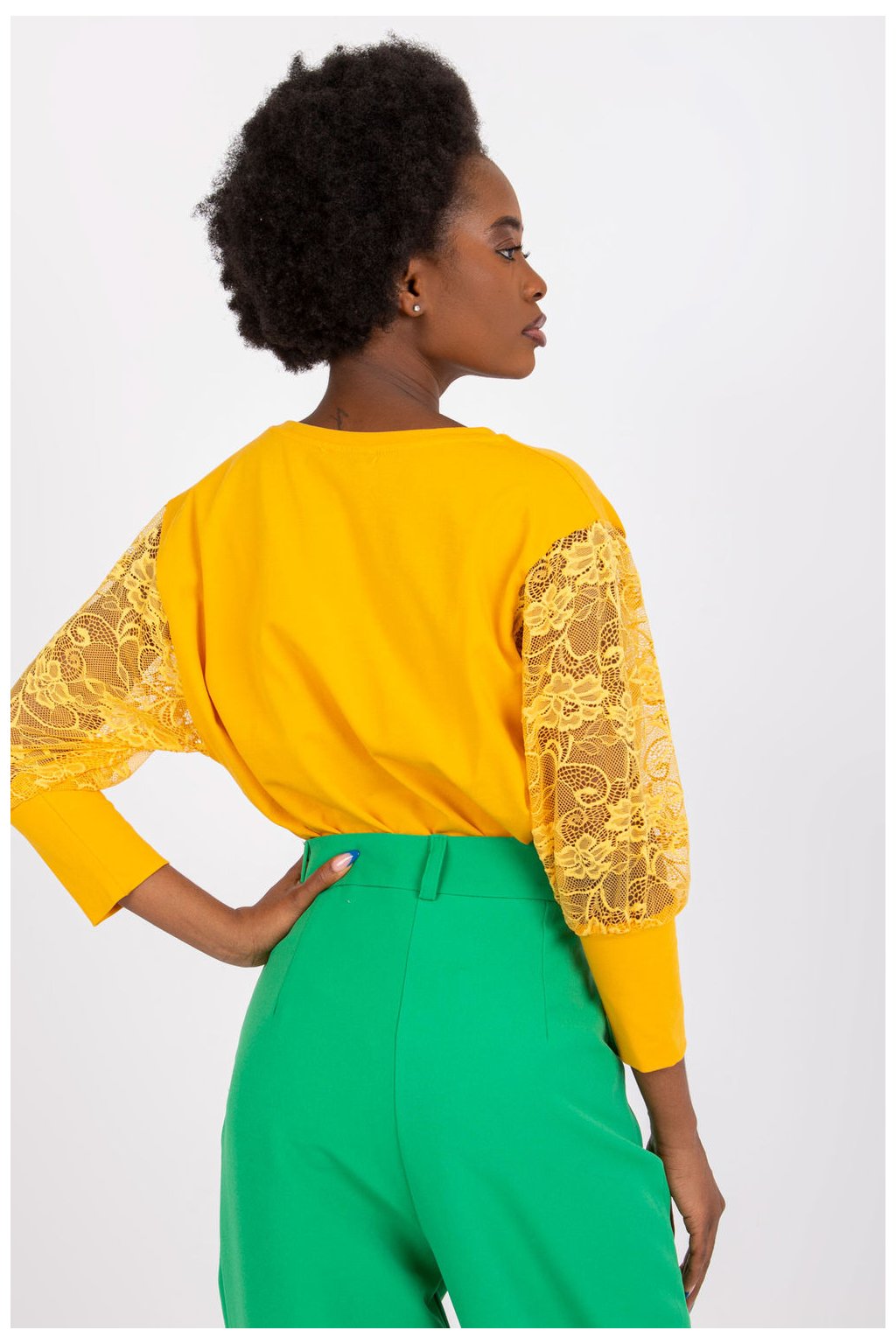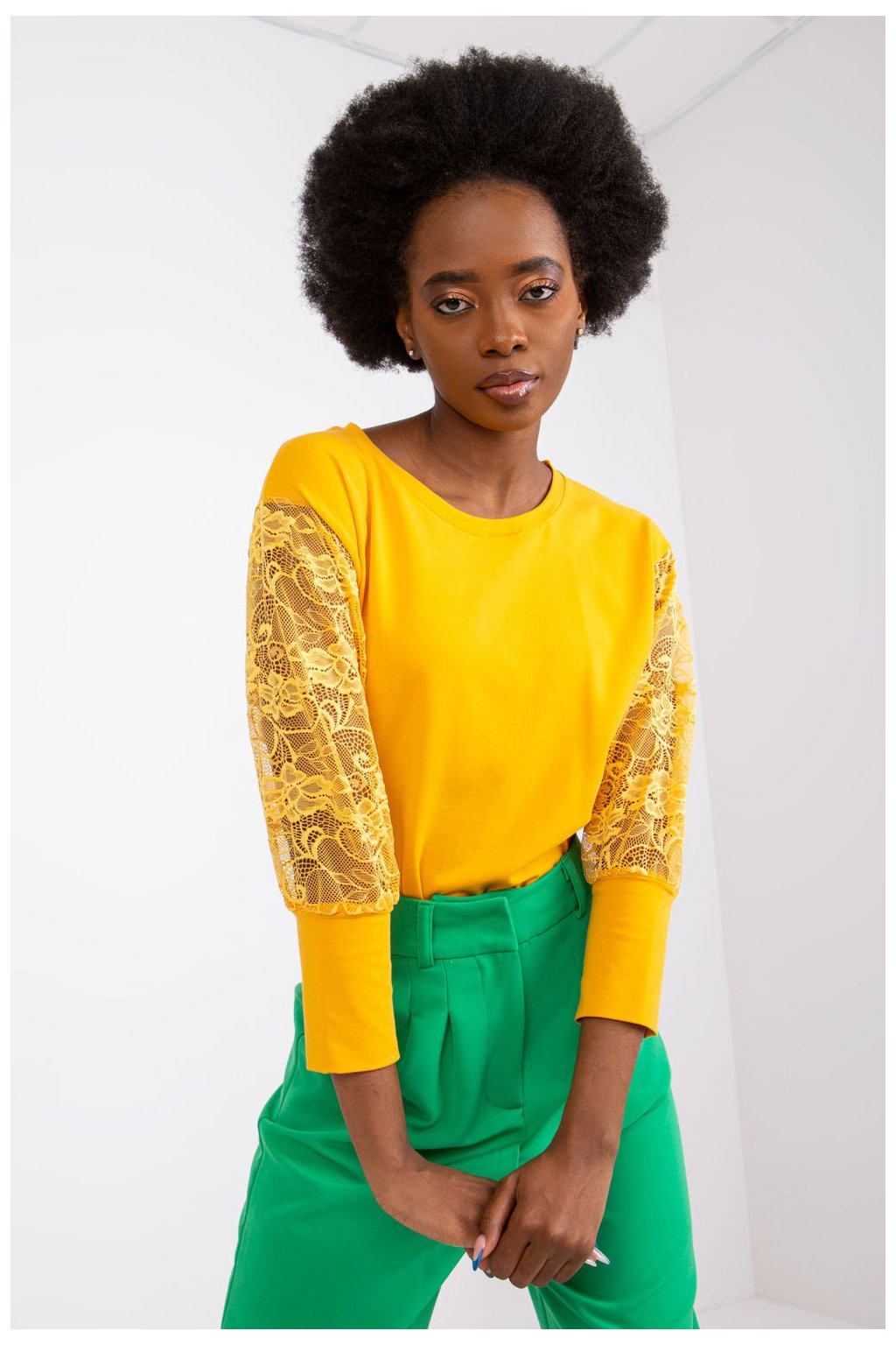 Halenka rovného střihu s 3/4 krajkovými rukávy a kulatým výstřihem.