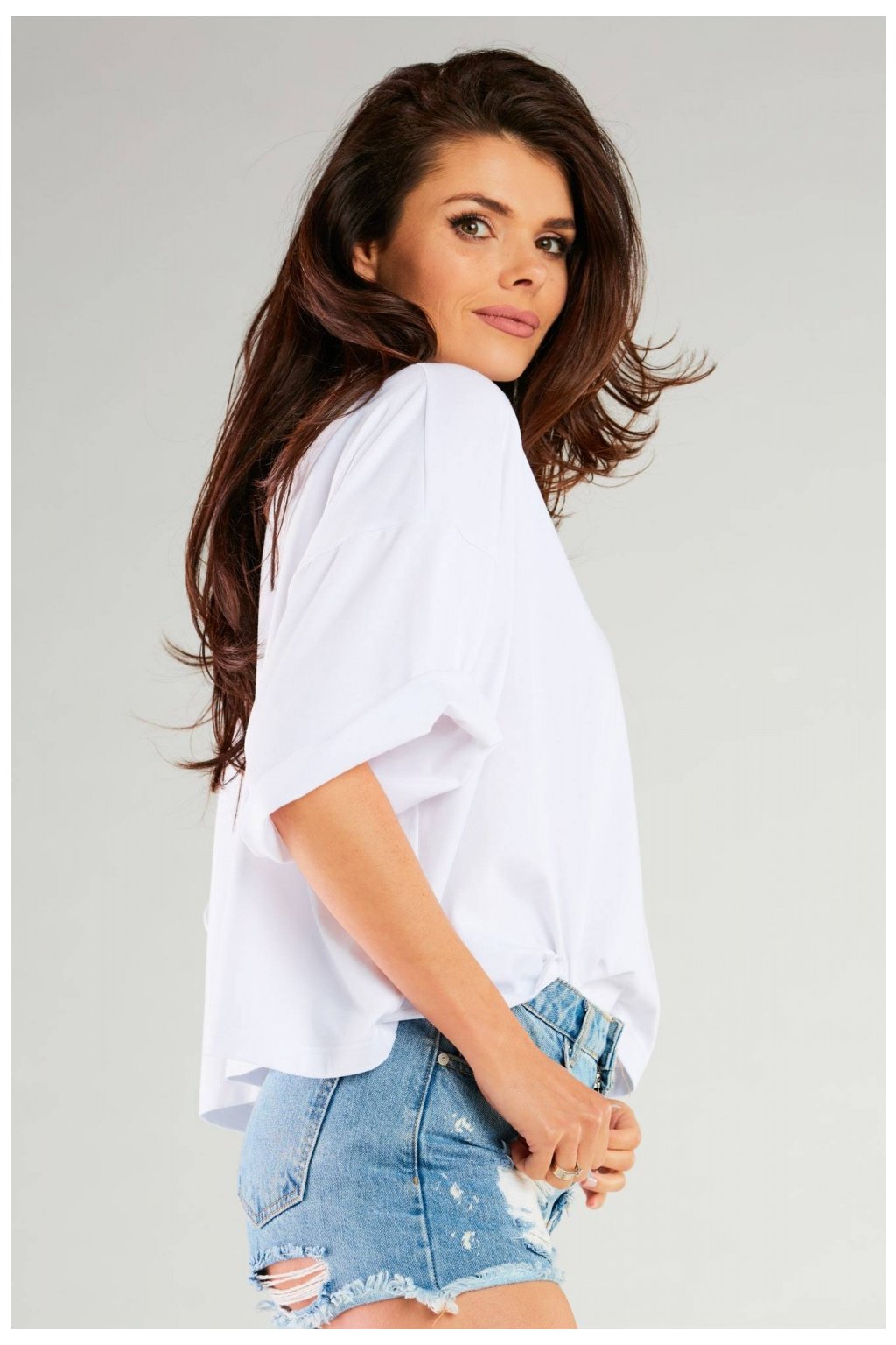 Volná halenka se širokými rukávy a kulatým výstřihem. K dispozici v 6 barvách: bílé, mátové, žluté, černé, růžové a fialové. Navrženo a ušito v Polsku.