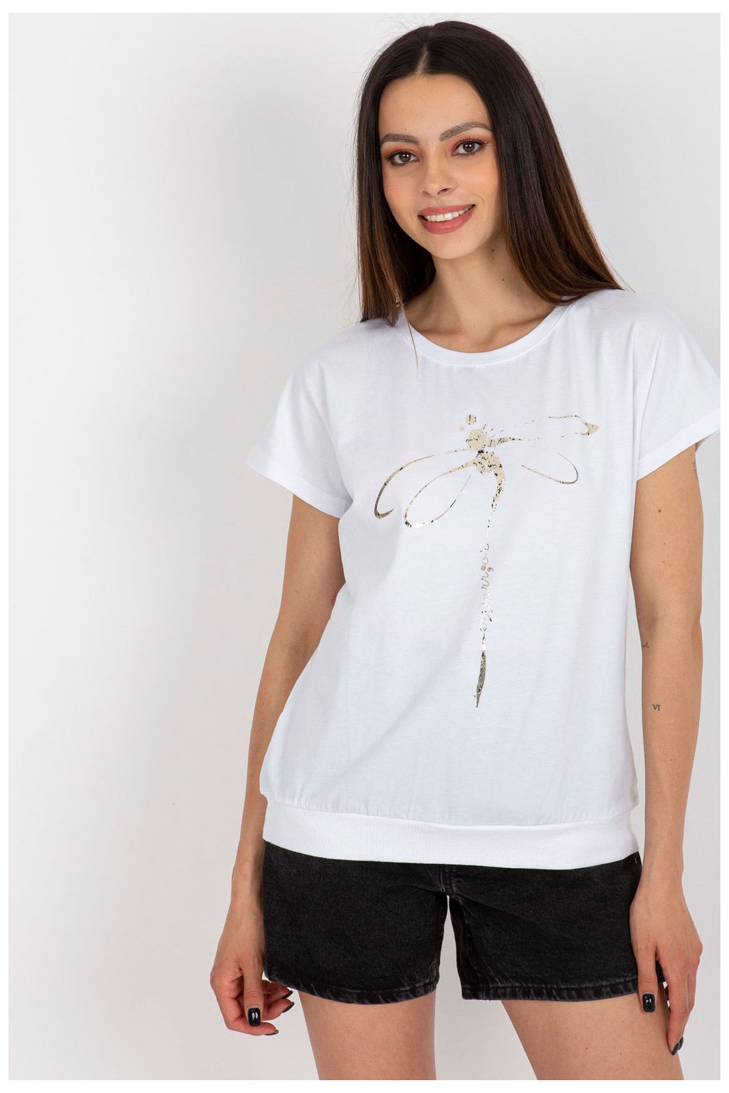 Bavlněná halenka s krátkými rukávy a kulatým výstřihem. Dekorativní potisk na přední straně.