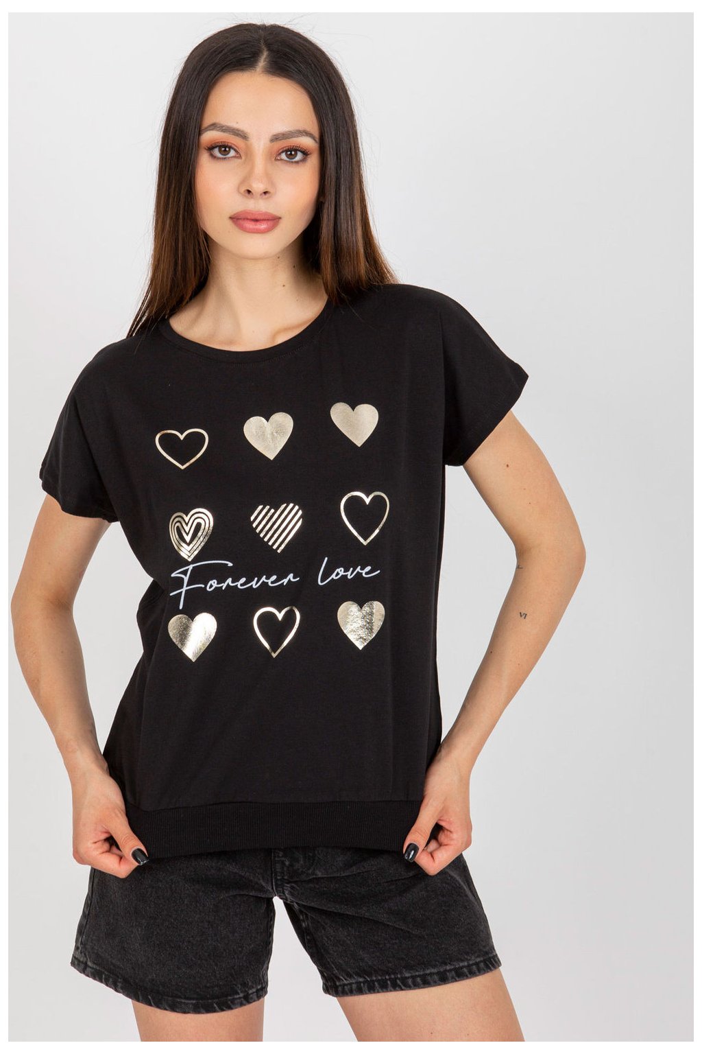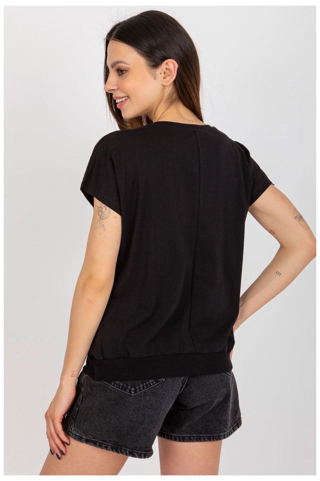 Bavlněná halenka s krátkými rukávy a kulatým výstřihem. Dekorativní potisk na přední straně.