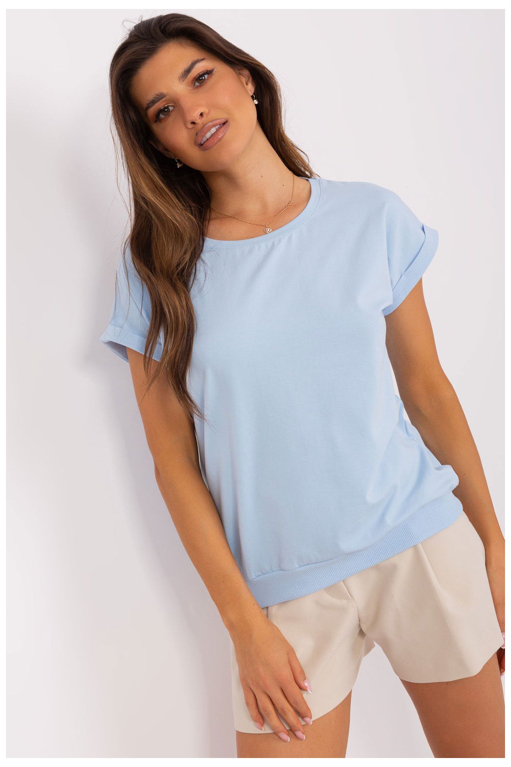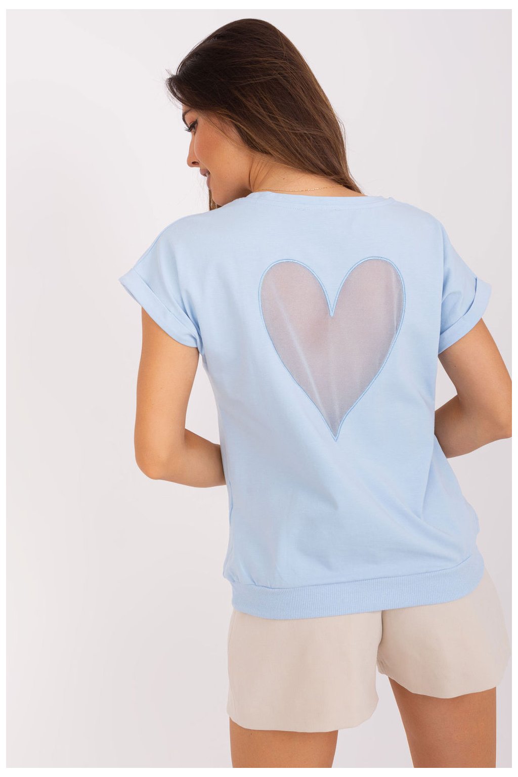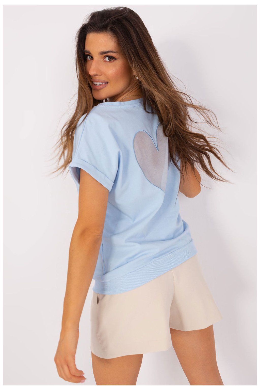 Halenka s krátkými rukávy a kulatým výstřihem. Ozdobná síťovaná vsadka ve tvaru srdce na zádech.