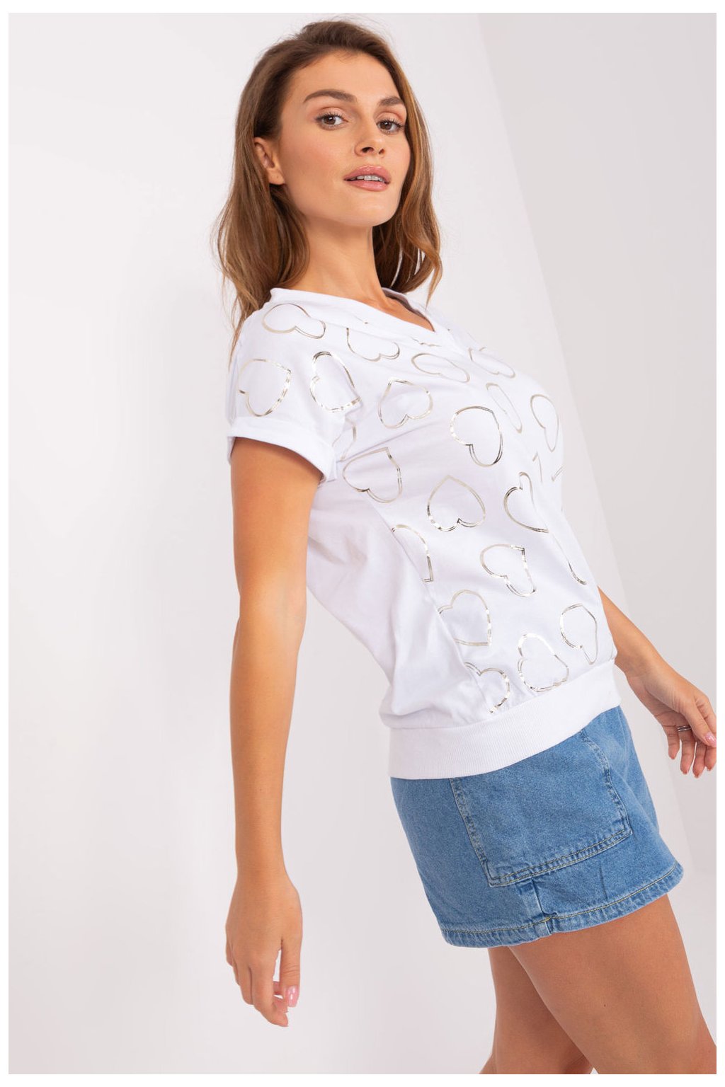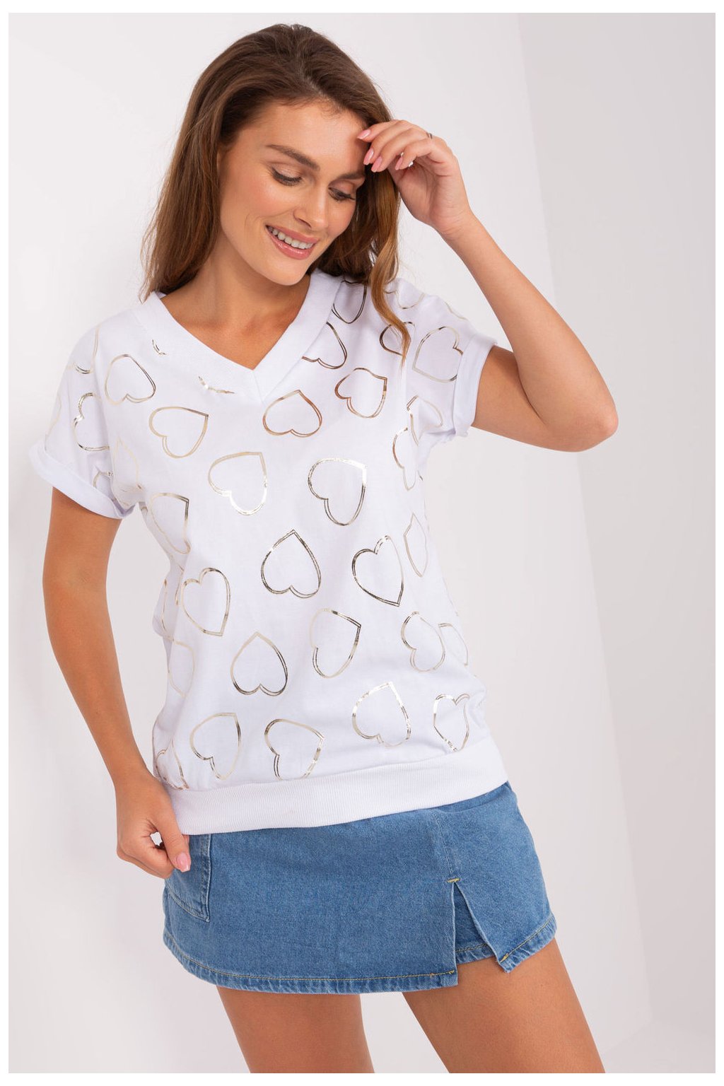 Volná halenka s krátkými rukávy a srdíčkovým výstřihem. Lesklý potisk ve tvaru srdce na přední straně.