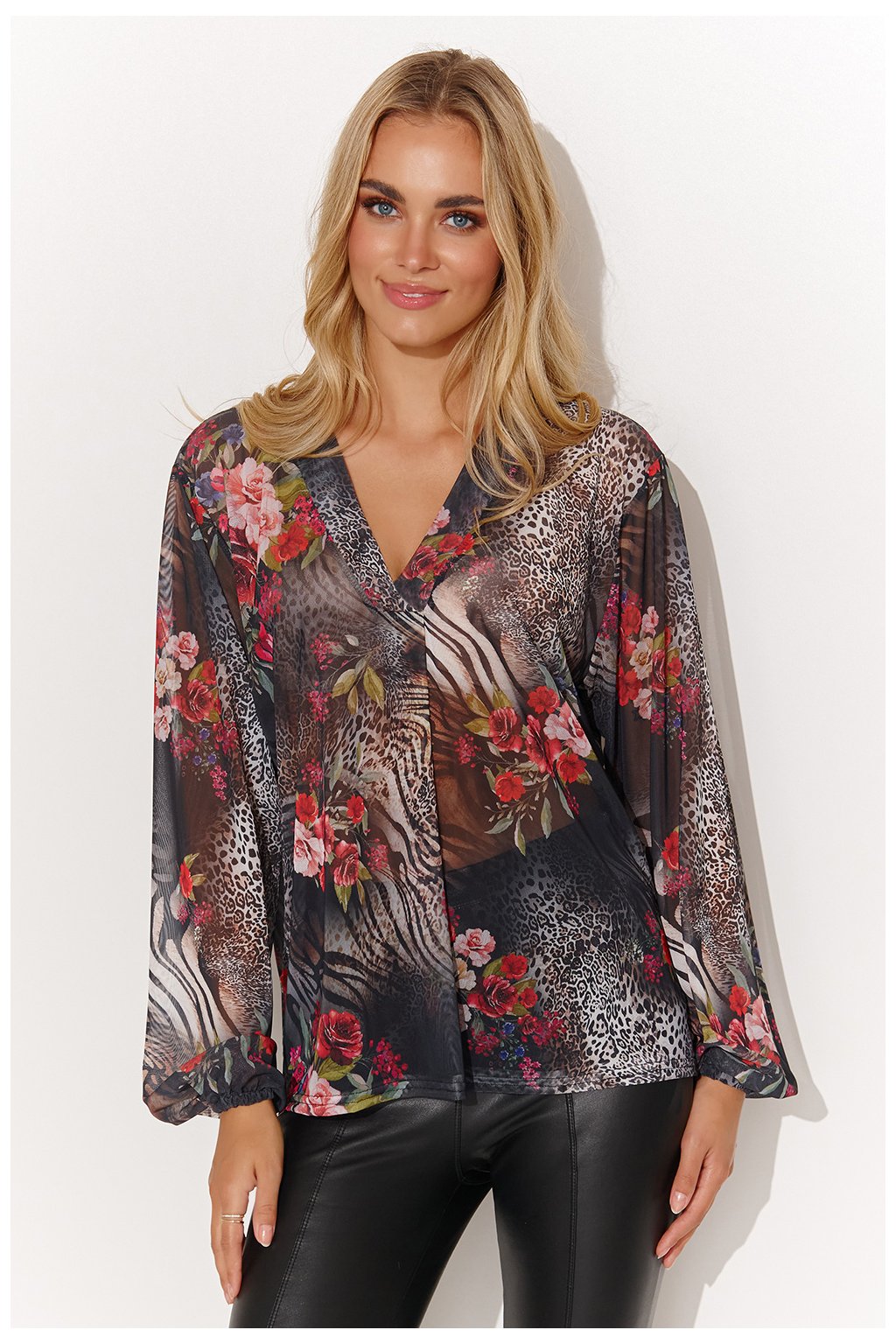 Dámská síťovaná halenka volného střihu, dostupná v 5 provedeních s různými motivy a zajímavými barvami. Má výstřih do V a ležérní dlouhé rukávy. Můžete ji nosit s džínami pro ležérní vzhled nebo s elegantními kalhotami či sukní a jehlovými podpatky pro zvláštní příležitost! Podtrhne vaši eleganci a dokonale se zkombinuje s vaším stylem. Spojte pohodlí s rafinovaností a užijte si módu jako nikdy předtím.