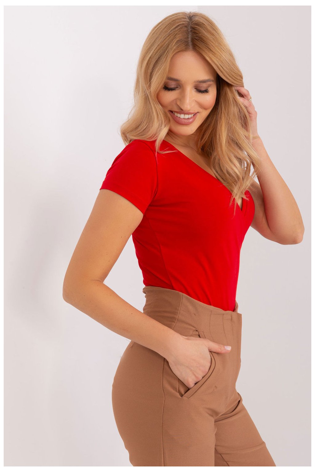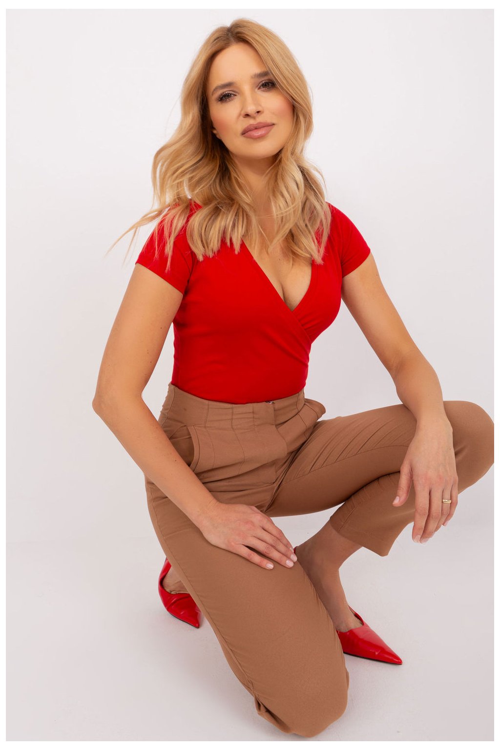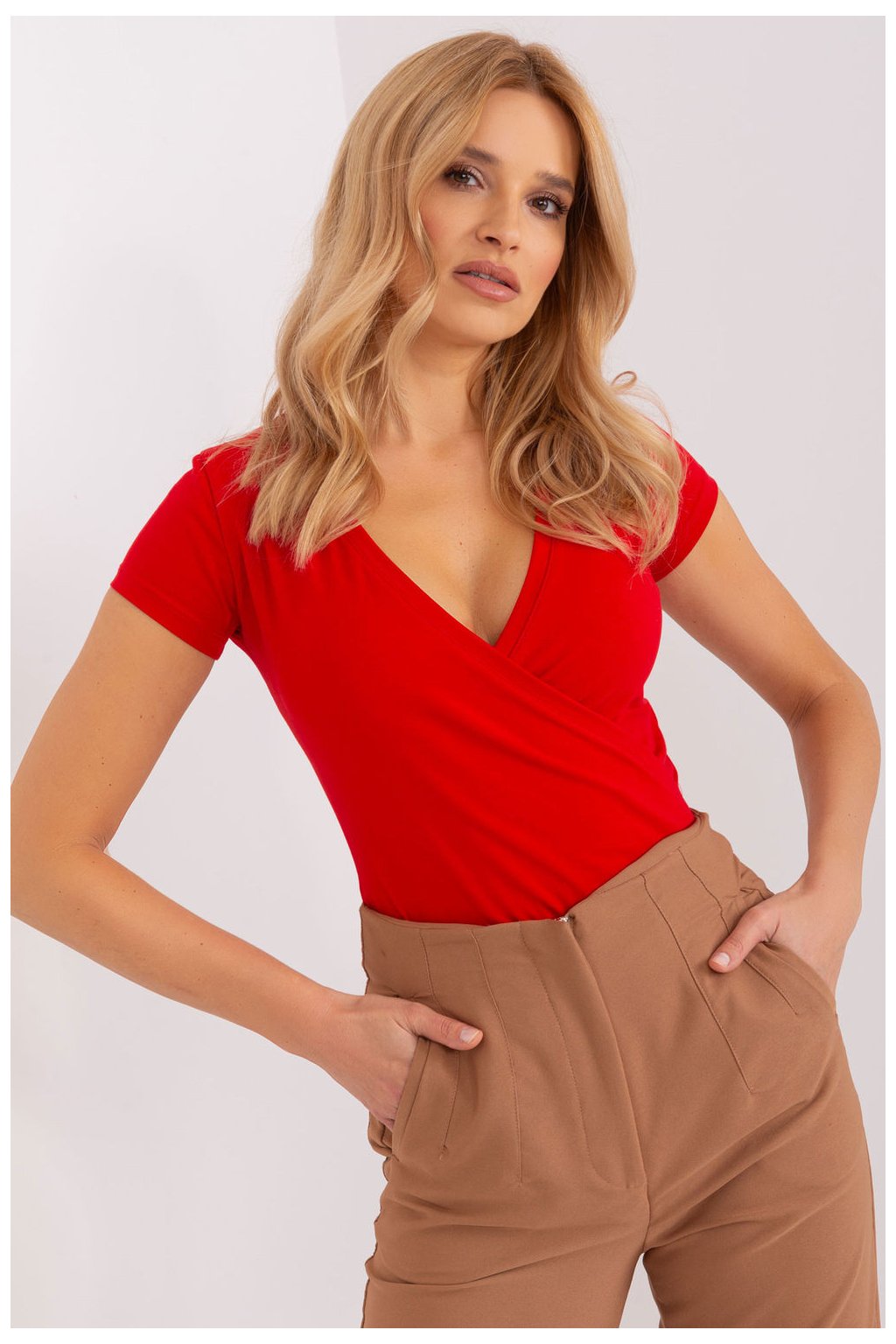 Přiléhavá halenka s krátkými rukávy a obálkovým výstřihem. Návrh ideální pro mnoho příležitostí.