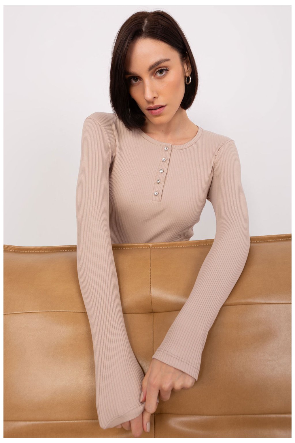 Tato halenka je dokonalou kombinací každodenního pohodlí a diskrétního půvabu. Její pruhovaná tkanina jí dodává zajímavý vzhled a na přední straně je zapínání na knoflíky zdobené zirkony, které halence dodávají eleganci. Díky dlouhému rukávu a kulatému výstřihu je ideální pro každodenní nošení, ať už do práce nebo na společenské akce. Je vyrobena z materiálu s převahou bavlny, takže je měkká a příjemná na nošení. Přiléhavý střih zvýrazňuje siluetu a standardní délka dodává halence univerzálnost. Je to halenka, která kombinuje každodenní styl s decentností, takže je ideální volbou pro mnoho různých příležitostí.