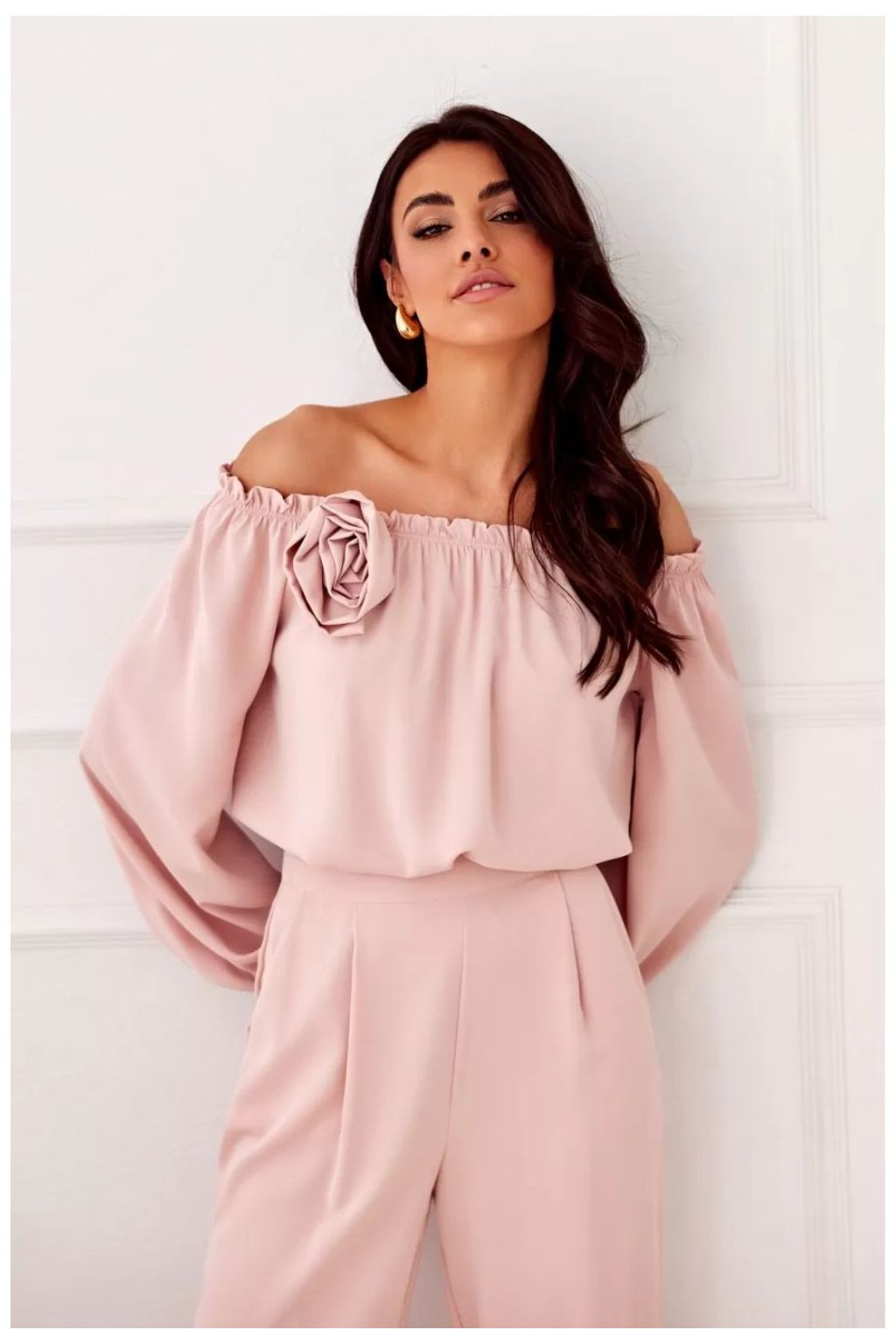 Rosie je elegantní halenka z příjemné saténové tkaniny. Výstřih ve španělském stylu dodává halence lehkost a krásně zvýrazňuje ramena, zatímco všitá guma zajišťuje pohodlí a dokonalé přizpůsobení. Ozdobný detail růže dodává španělské halence charakter a originalitu. Dlouhé širší rukávy jsou zakončeny tenkou gumičkou, která dodává funkčnost. Saténová španělská halenka je ideální pro formální styling. V kombinaci s dlouhými kalhotami nebo sukní a klasickými jehlovými podpatky bude ideální volbou pro přijímání, svátky, křtiny a elegantní vycházky. Pokud toužíte po vkusném odhalení ramen a výstřihu, zvolte halenku Rosie.