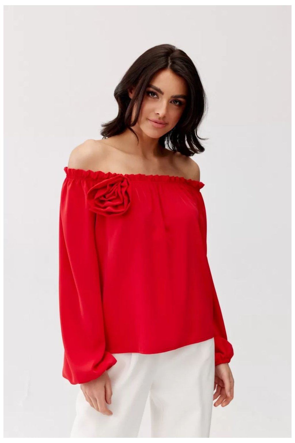 Rosie je elegantní halenka z příjemné saténové tkaniny. Výstřih ve španělském stylu dodává halence lehkost a krásně zvýrazňuje ramena, zatímco všitá guma zajišťuje pohodlí a dokonalé přizpůsobení. Ozdobný detail růže dodává španělské halence charakter a originalitu. Dlouhé širší rukávy jsou zakončeny tenkou gumičkou, která dodává funkčnost. Saténová španělská halenka je ideální pro formální styling. V kombinaci s dlouhými kalhotami nebo sukní a klasickými jehlovými podpatky bude ideální volbou pro přijímání, svátky, křtiny a elegantní vycházky. Pokud toužíte po vkusném odhalení ramen a výstřihu, zvolte halenku Rosie.