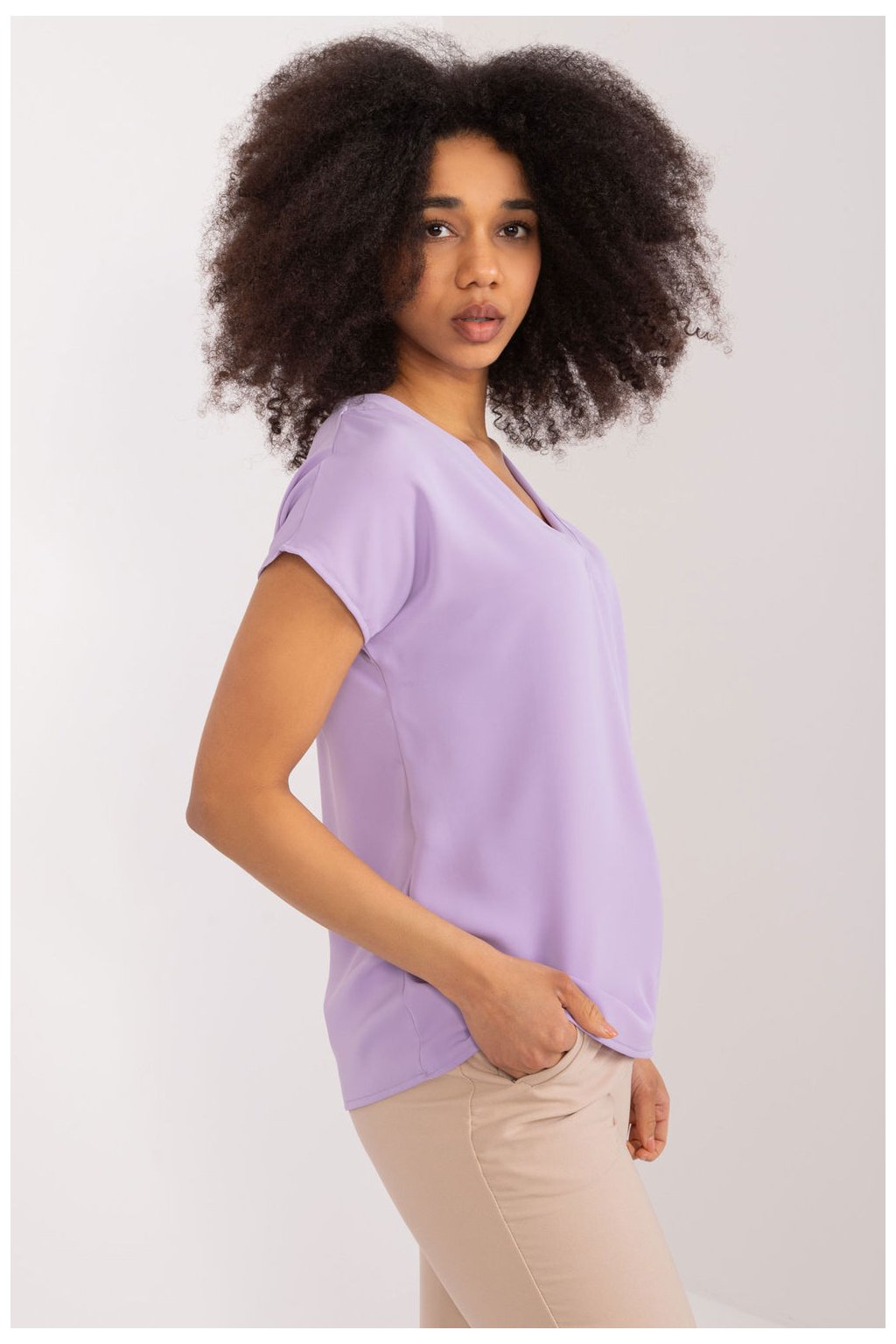 Ležérní halenka zaujme svou jednoduchostí a elegancí, která je ideální pro každodenní nošení. Její rovný střih umožňuje volnost pohybu a pohodlné nošení. Je vyrobena převážně z hladkého polyesteru a tento materiál přispívá k výjimečné lehkosti a příjemnosti halenky při nošení. Díky standardní délce a krátkým rukávům je ideální volbou pro teplé dny. Jedinečný půvab a lehkost však halence dodává srdíčkový výstřih, který dokonale odhaluje krk a dodává jí ženský šarm. Tato ležérní halenka je ideální volbou pro ty, kteří ocení jednoduchost v kombinaci s elegancí. Je ideální pro každodenní nošení, do práce i na vycházky s přáteli, kde poskytne nejen pohodlí, ale také decentní módní akcent šatníku.