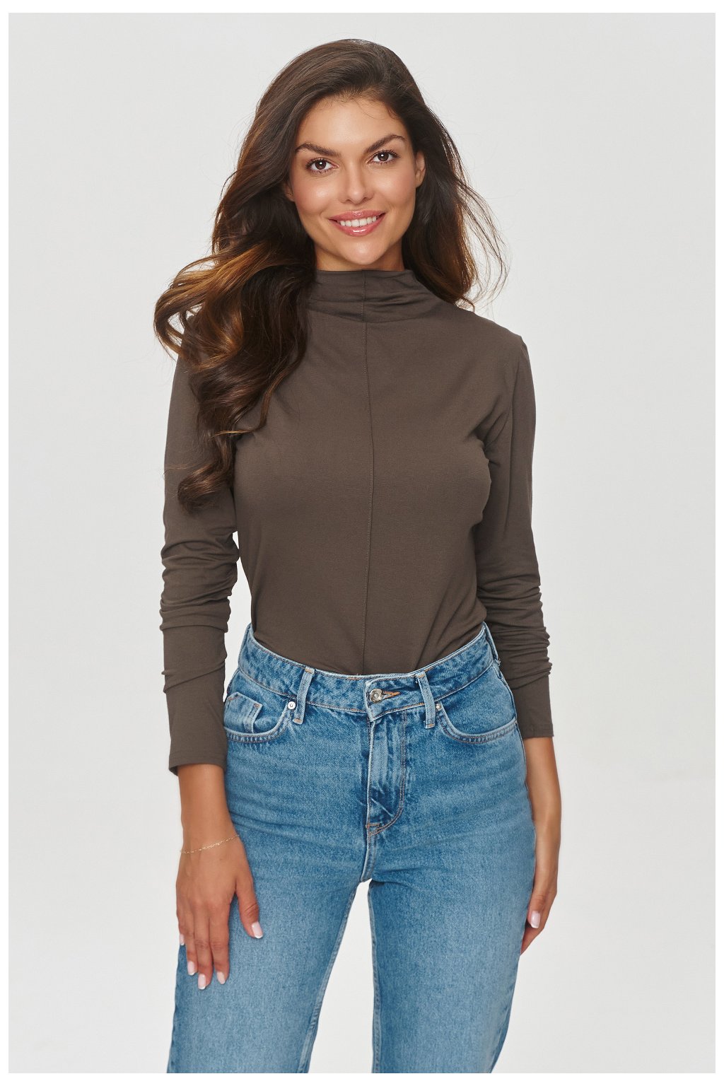Univerzální dámská halenka vyrobená z lehké prodyšné viskózy je klasikou v podzimno-zimní garderobě. Model má vysoký gol a dlouhé rukávy, což zajišťuje funkčnost. Prošívání na přední straně halenky ji dodává originalitu a výjimečný charakter. Model je jemně přizpůsobený, ale neomezuje pohyb díky elastickému materiálu. Jeho jednoduchý tvar je skvělým doplňkem mnoha stylizací, jak pro každodenní nošení, tak pro formální příležitosti. Model je ideální pro ženy, které ocení kombinaci pohodlí, funkčnosti a nadčasovosti.