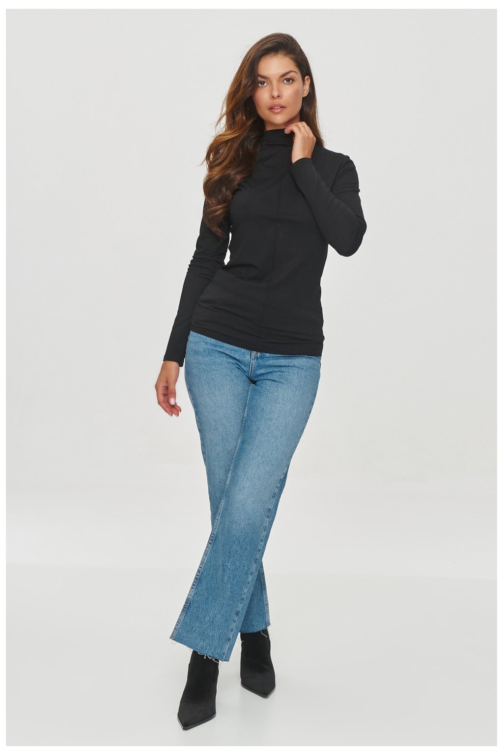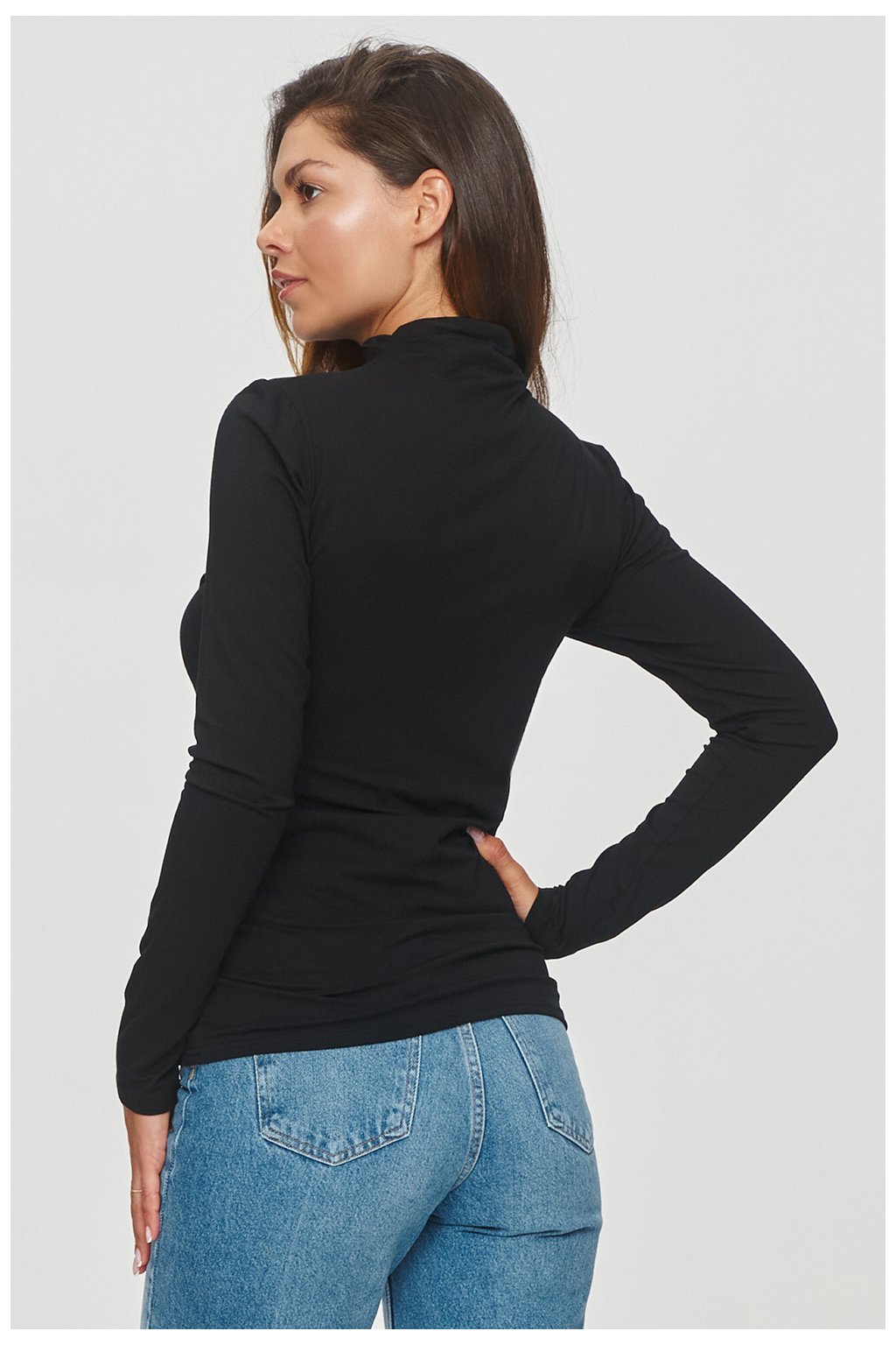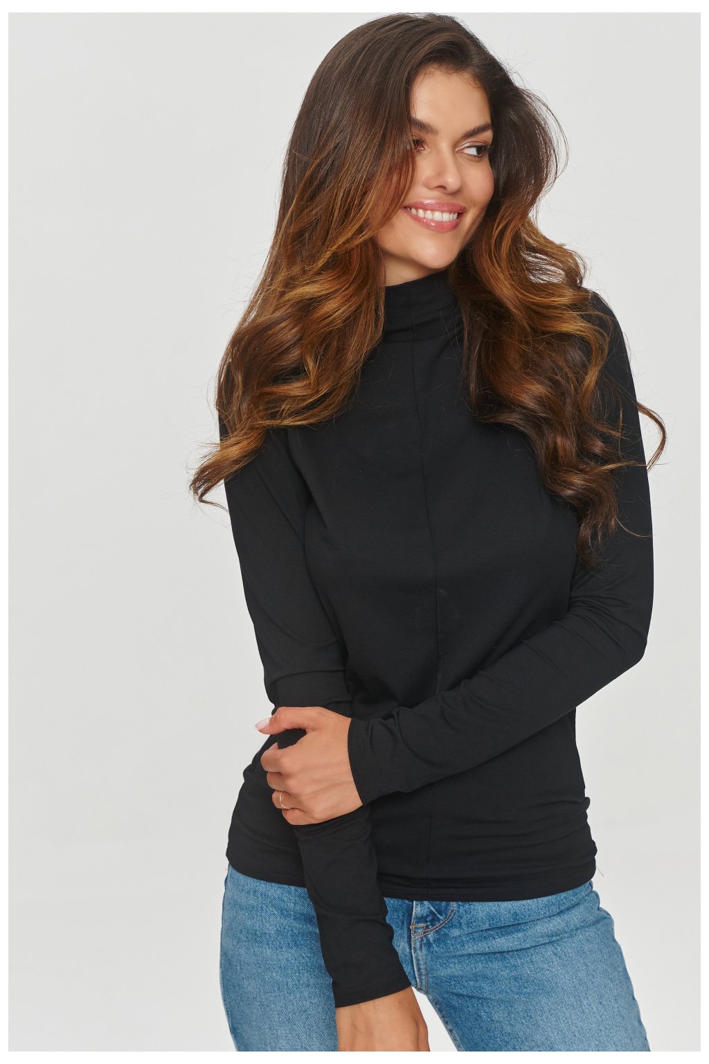 Univerzální dámská blůza vyrobená z lehké prodyšné viskózy je klasikou v podzimně-zimní garderobě. Model má vysoký gol a dlouhé rukávy zajišťující funkcionalitu. Šev na přední straně blůzy dodává originality a výjimečného charakteru. Model je jemně přizpůsobený, ale neomezuje pohyb díky elastickému materiálu. Jeho jednoduchý tvar je dokonalým doplňkem mnoha stylizací, jak casualových, tak i více formálních. Model je ideální pro ženy, které ocení spojení pohodlí, funkčnosti a nadčasovosti.