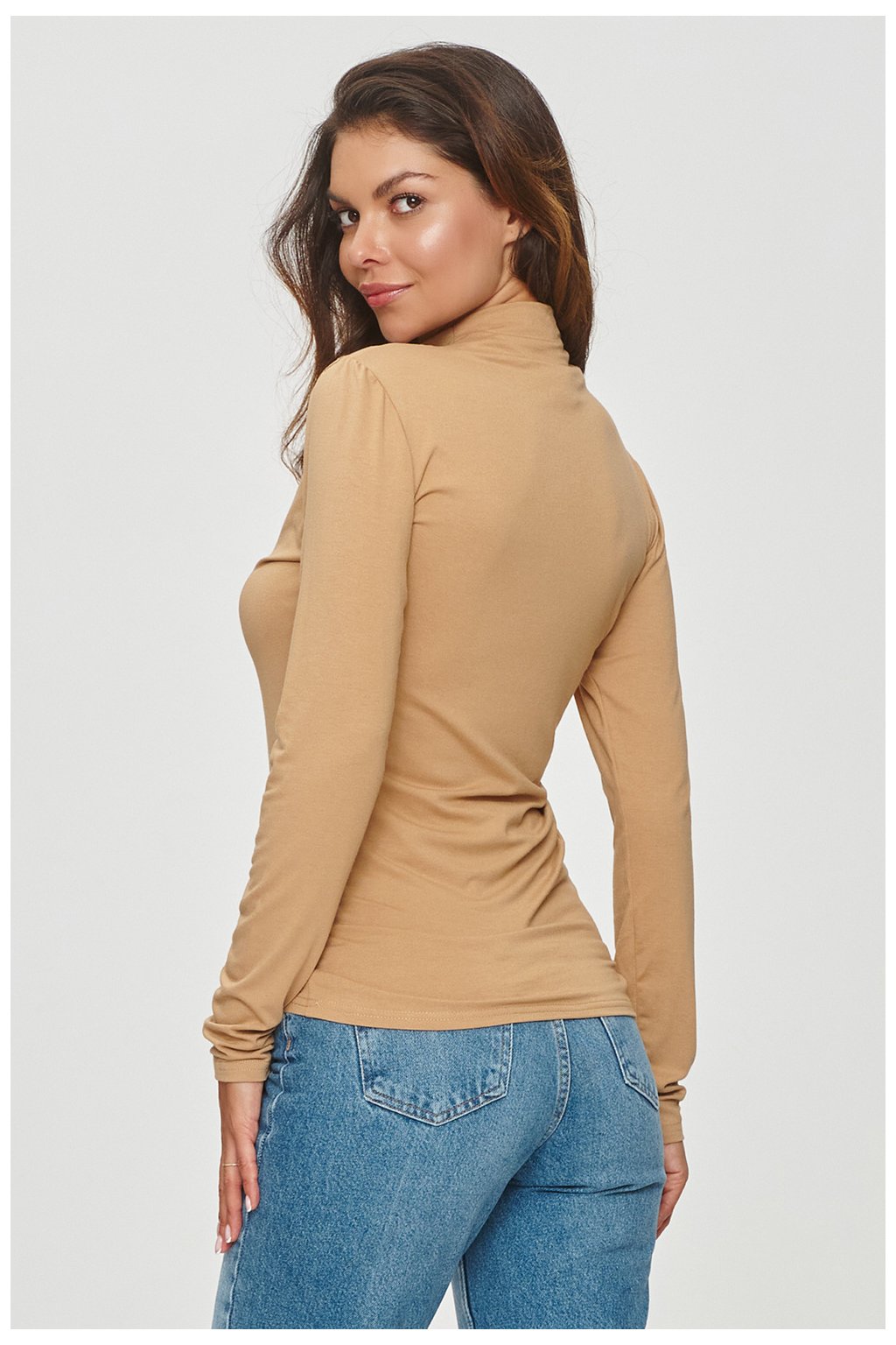 Univerzální dámská halenka vyrobená z lehké prodyšné viskózy je klasikou v podzimní a zimní garderobě. Model má vysoký gol a dlouhé rukávy, co zajišťuje funkčnost. Prošívání na přední straně halenky ji dodává originality a výjimečného charakteru. Model je jemně přizpůsobený, ale neomezuje pohyb díky elastickému materiálu. Jeho jednoduchý tvar je dokonalým doplňkem mnoha casual i více formálních stylizací. Model ideální pro ženy, kteří ocení spojení pohodlí, funkčnosti a nadčasovosti.