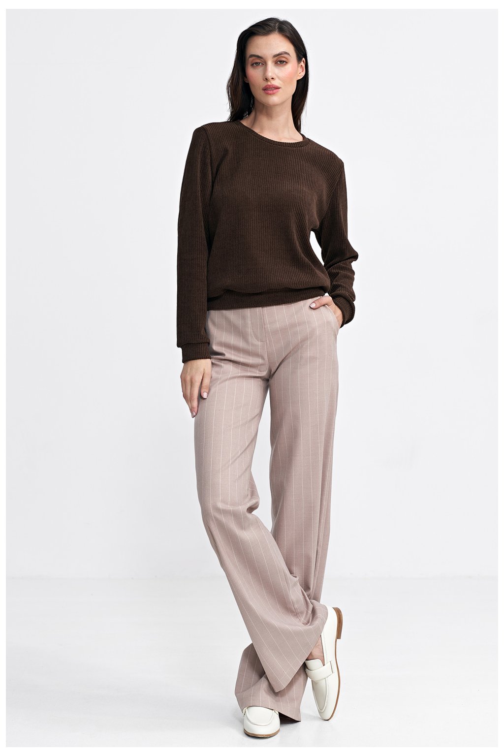 Tato nadčasová halenka je must-have v šatníku každé ženy. Vyrobená z vysokokvalitní, měkké pruhované pleteniny, poskytuje pohodlí a komfort při nošení. Kulatý výstřih a dlouhý rukáv s pružným lemem jsou klasické prvky, které nikdy nevyjdou z módy. Jednoduchý, pravidelný střih z ní dělá vhodný kousek do mnoha outfitů. Přes hlavu, bez zapínání, co zvyšuje pohodlí při nošení.