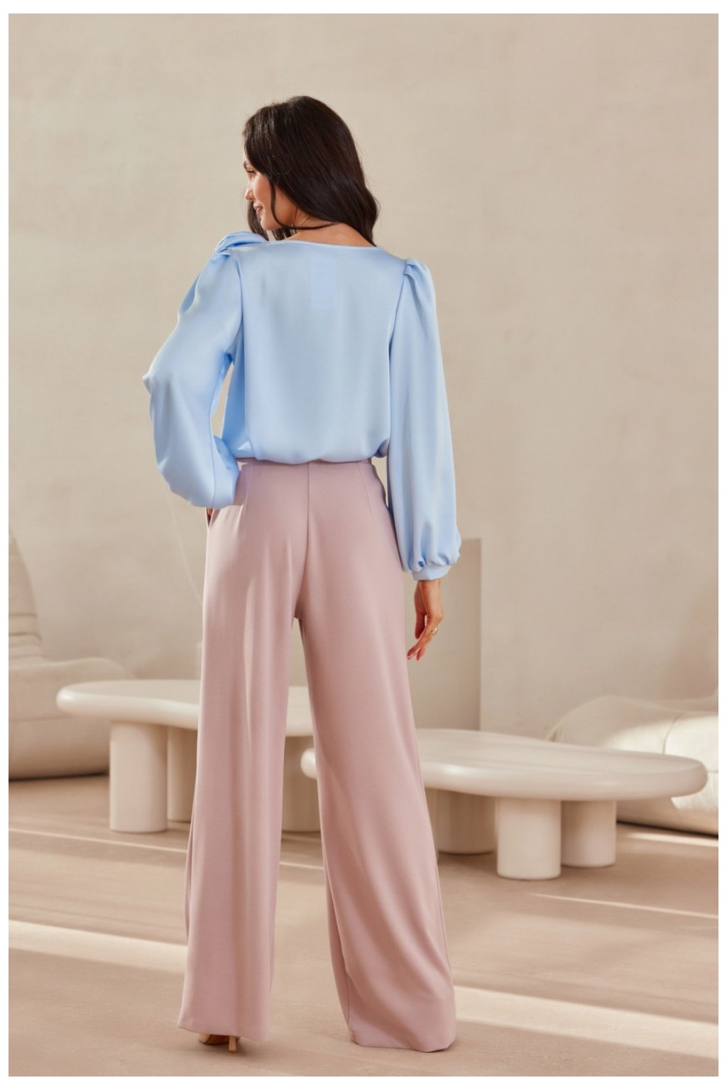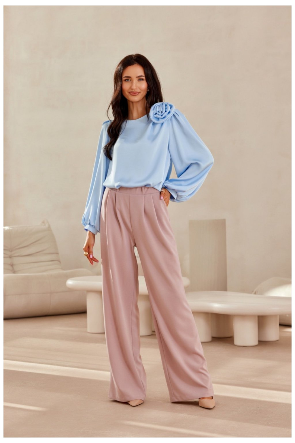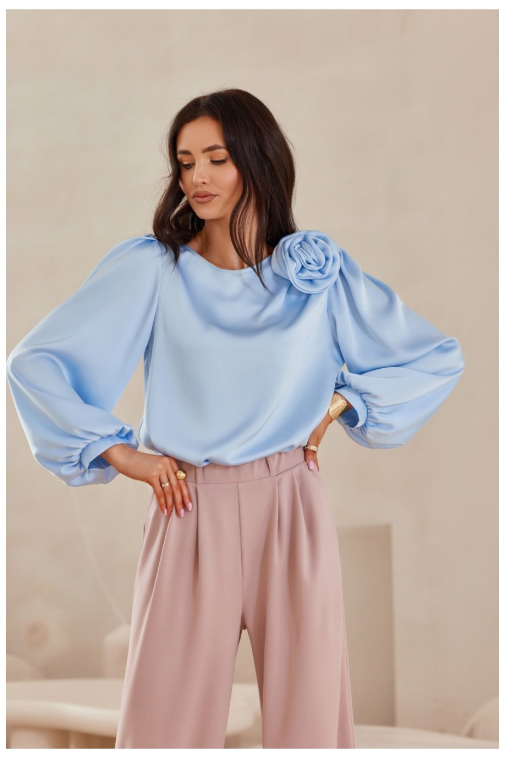 Blůza Evelyn je model vyrobený z saténového materiálu, který dodává stylizaci velmi elegantní a luxusní vzhled. Kolečkový výstřih je zdoben efektní růží, která přidává ležérnost a styl a zároveň dělá blůze výjimečnost. Široké, nadýchané dlouhé rukávy krásně zdůrazňují ramena a ženskou siluetu. Její volný střih zaručuje volnost pohybu a pohodlí nošení. Blůza Evelyn se skvěle hodí do elegantních a slavnostních stylizací. Můžete ji zkombinovat s dlouhými saténovými kalhotami, úzkou midi sukni a sako s jednoduchým střihem a dlouhými kozačkami nad kolena, abyste dosáhli velmi efektního stylu vhodného na vánoční večírky a elegantní oslavy. Produkt je vyroben a ušit v Polsku.