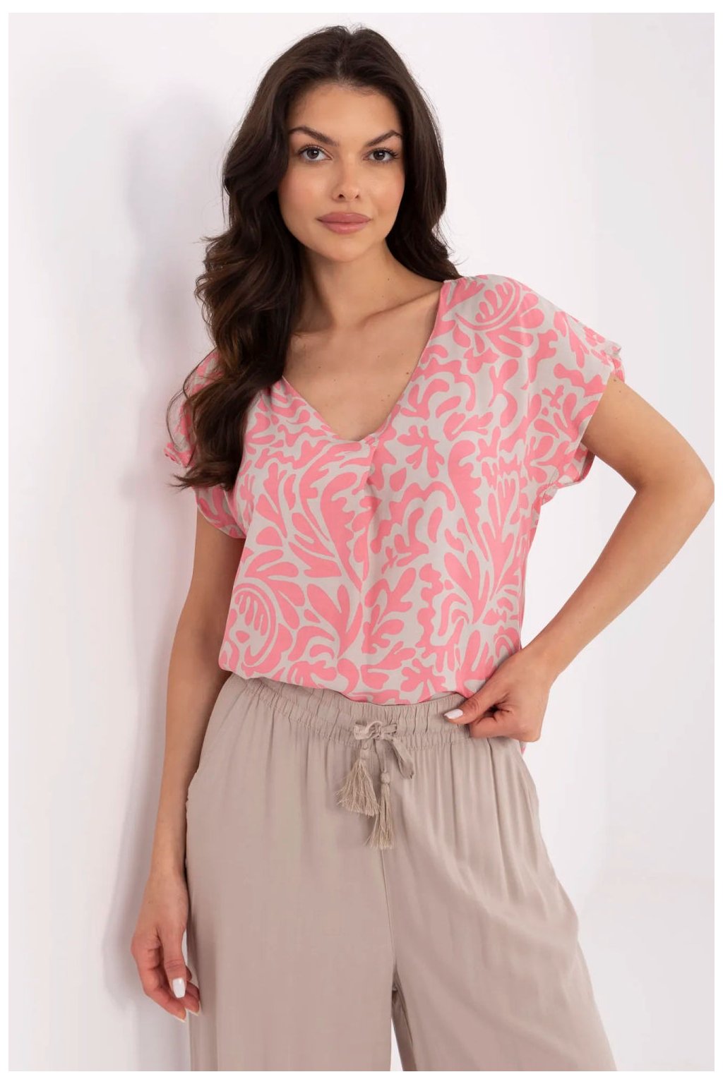 Dámská volná blůza je skvělý návrh na každý den, spojující pohodlí a styl. Vyrobena z přírodní viskózy, je měkká, prodyšná a přátelská k pokožce, poskytující pohodlí po celý den. Blůza má standardní délku, krátký rukáv a výstřih do večírku, což z ní činí vhodnou pro mnoho každodenních stylizací. Bez zapínání, v jednoduchém, ale módním střihu, je ideální volbou k džínám, šortkám nebo sukním. Co je důležité, výrobek patří do kategorie ekologického oblečení, což znamená, že tím, že se staráte o stylový vzhled, také podporujete ochranu životního prostředí.