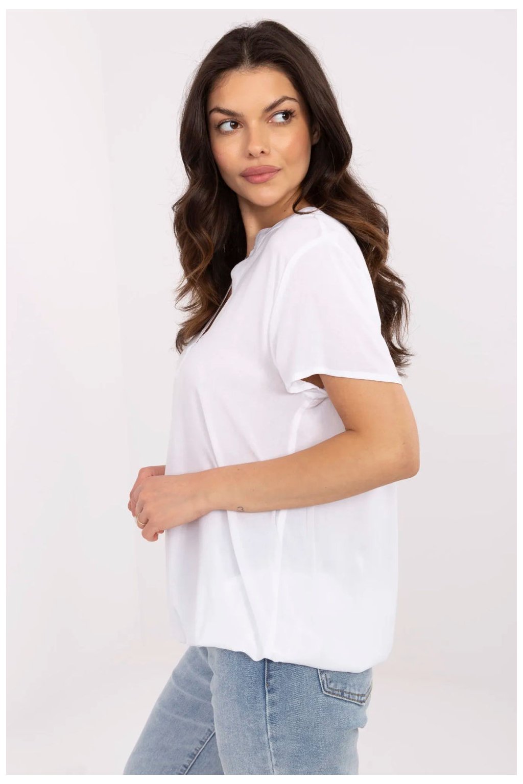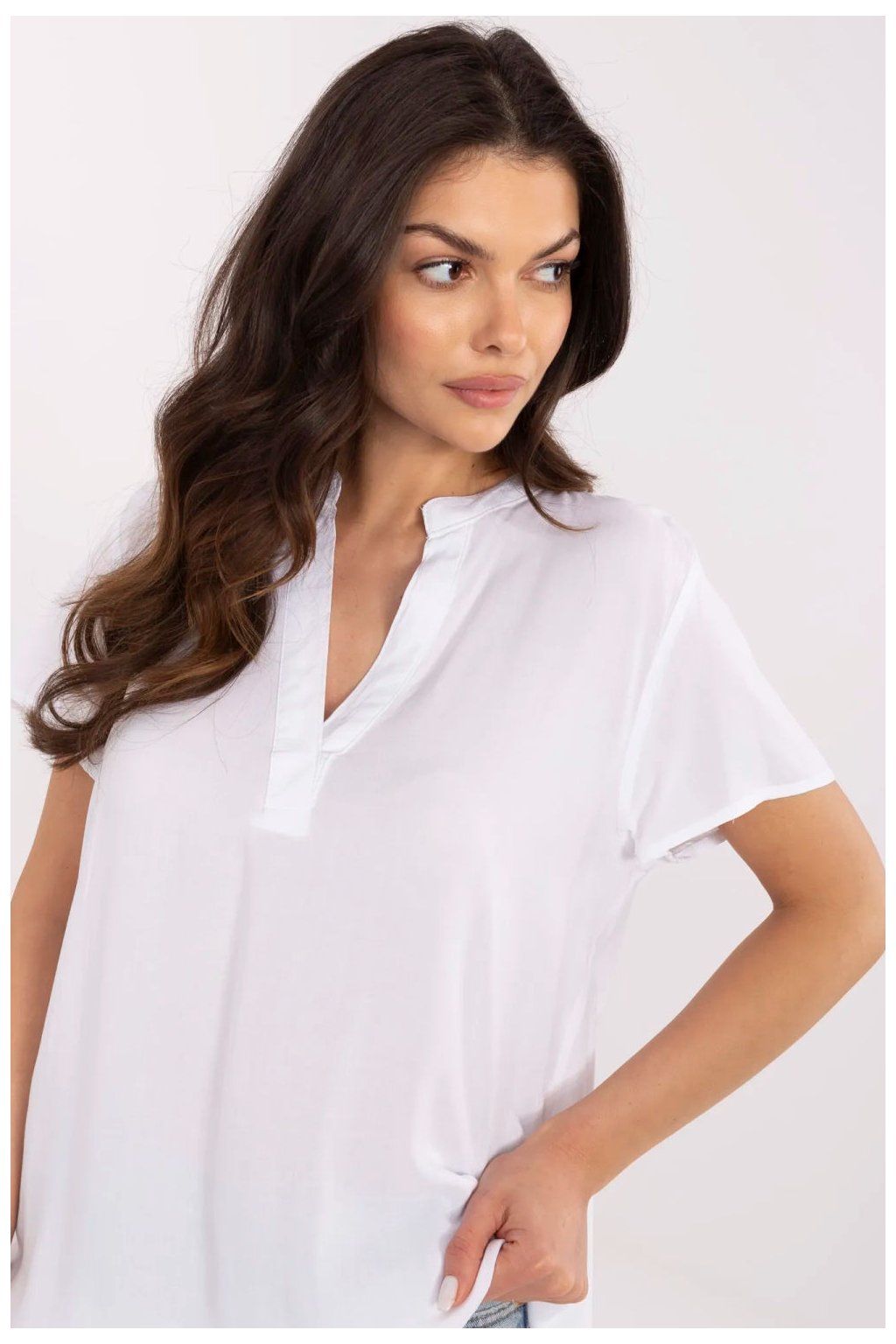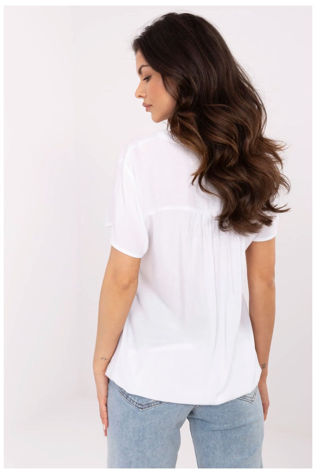 Univerzální košile s casual charakterem, navržená s ohledem na každodenní pohodlí a uvědomělé volby. Vyrobena z příjemné ekologické viskózy, není pouze lehká a prodyšná, ale také šetrná k životnímu prostředí. Model standardní délky s krátkým rukávem se skvěle hodí na teplejší dny. Hladká textura materiálu usnadňuje styling, a výstřih ve tvaru srdce spojený s elegantním stojáčkem dodává celku originální charakter. Ideální volba pro ženy, které ocení jednoduchost, pohodlí a módu v souladu s přírodou.