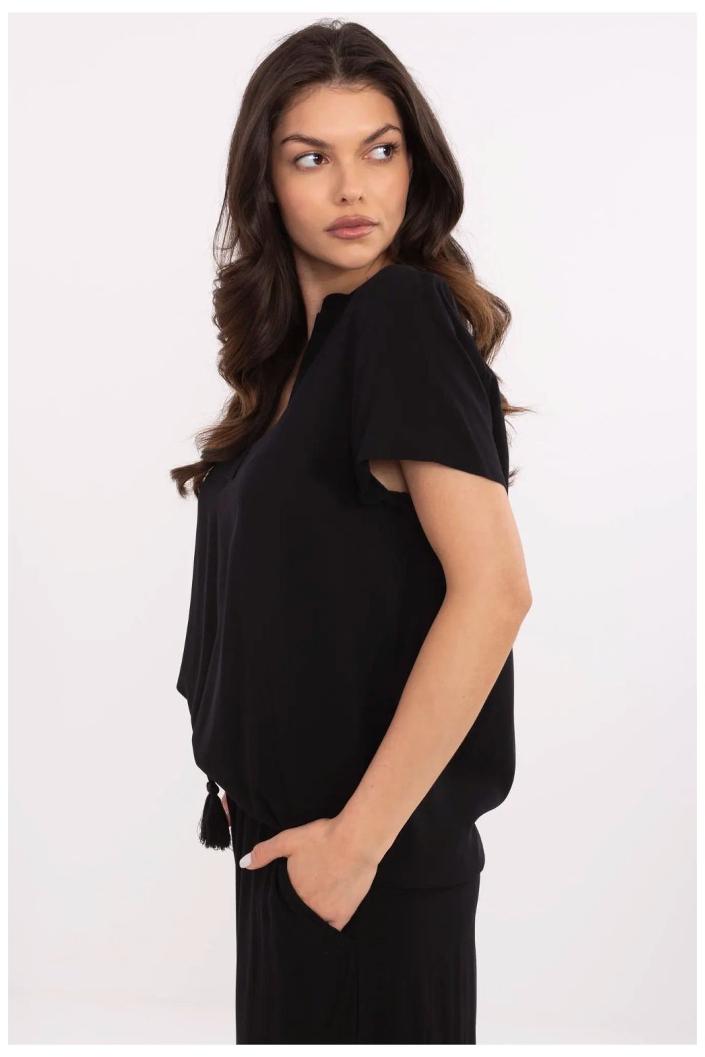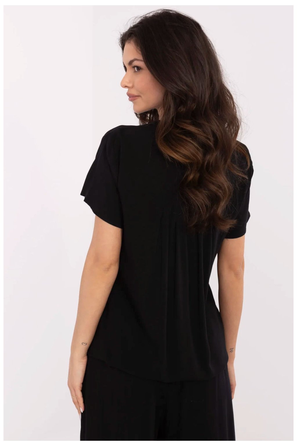 Univerzální košile s ležérním charakterem, vytvořená s ohledem na každodenní pohodlí a uvědomělý výběr. Vyrobena z příjemné viskózy, ekologického materiálu, je nejen lehká a prodyšná, ale také šetrná k životnímu prostředí. Standardní délka a krátký rukáv modelu se skvěle hodí na teplejší dny. Hladká textura materiálu usnadňuje styling a výstřih ve tvaru srdce spojený s elegantním stojáčkem dodává celku originálního charakteru. Ideální volba pro ženy, které ocení jednoduchost, pohodlí a módu v souladu s přírodou.