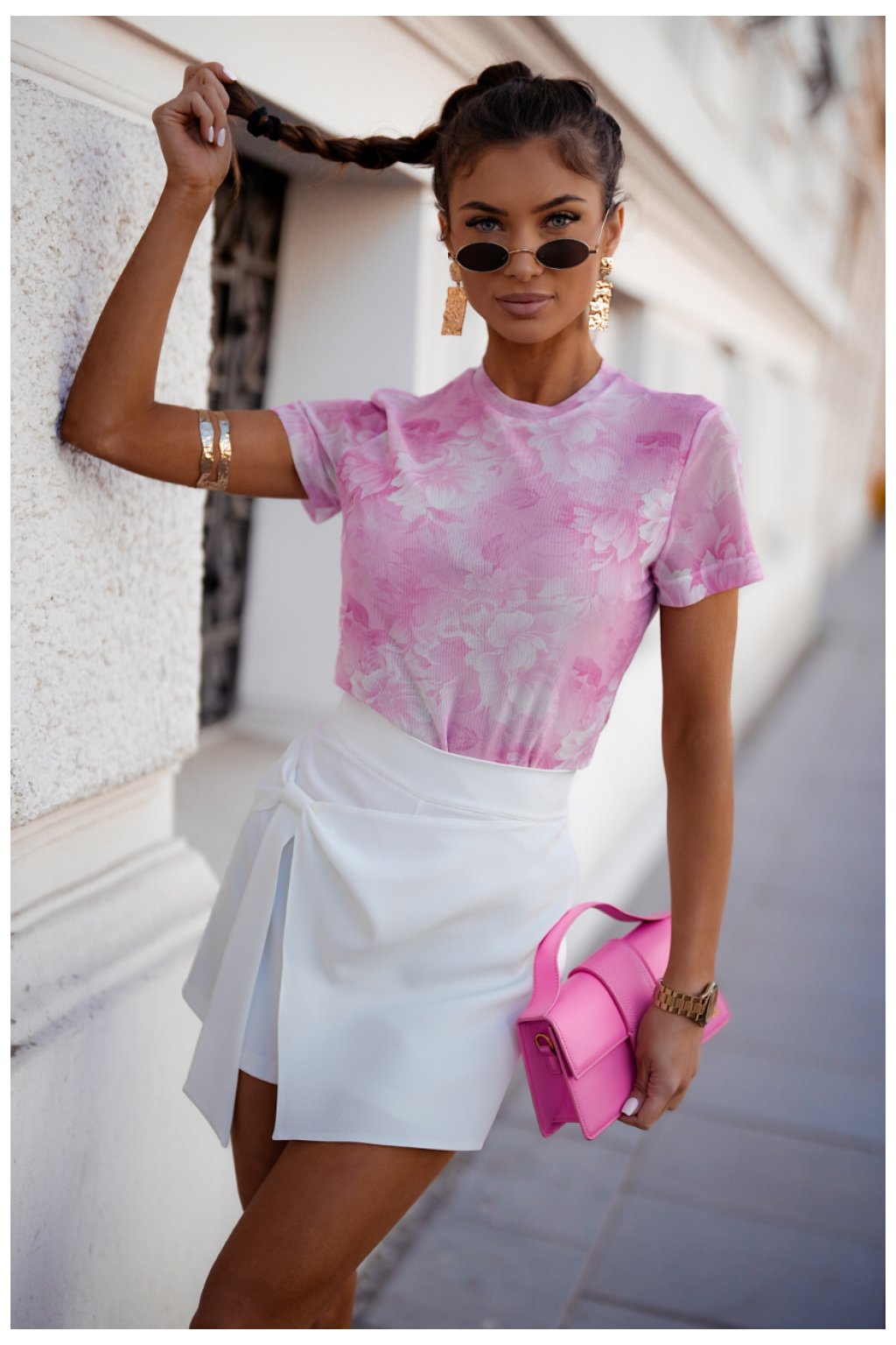 Blůza z tylu s krátkým rukávem je jedinečným kouskem šatníku, který spojuje lehkost a eleganci. Vyrobena z jemného, poloprůhledného materiálu, jemně zdůrazňuje postavu a dodává outfitu ženského půvabu. Kulatý výstřih přidává klasický charakter a barevný potisk přitahuje pohled a dodává blůze nezaměnitelný výraz. Ideální jak do každodenního života, tak na speciální příležitosti, skvěle ladí s džíny, sukní nebo elegantními kalhotami.