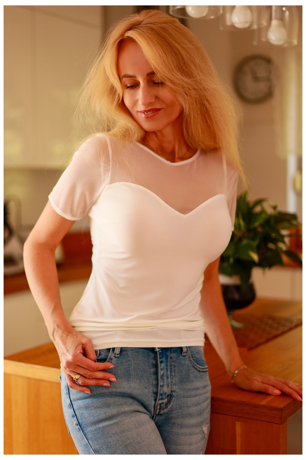 Model Celia je kombinací mikrovlákna s jemnou síťovinou z chiffonu. Tvarovaný střih, příjemný materiál a klasický střih dělají z této blůzy univerzální kousek. Celia má krátký rukáv a kulatý výstřih, takže skvěle nahradí klasické tričko ve spojení s džínami a bude skvělým prvkem večerního outfitu.