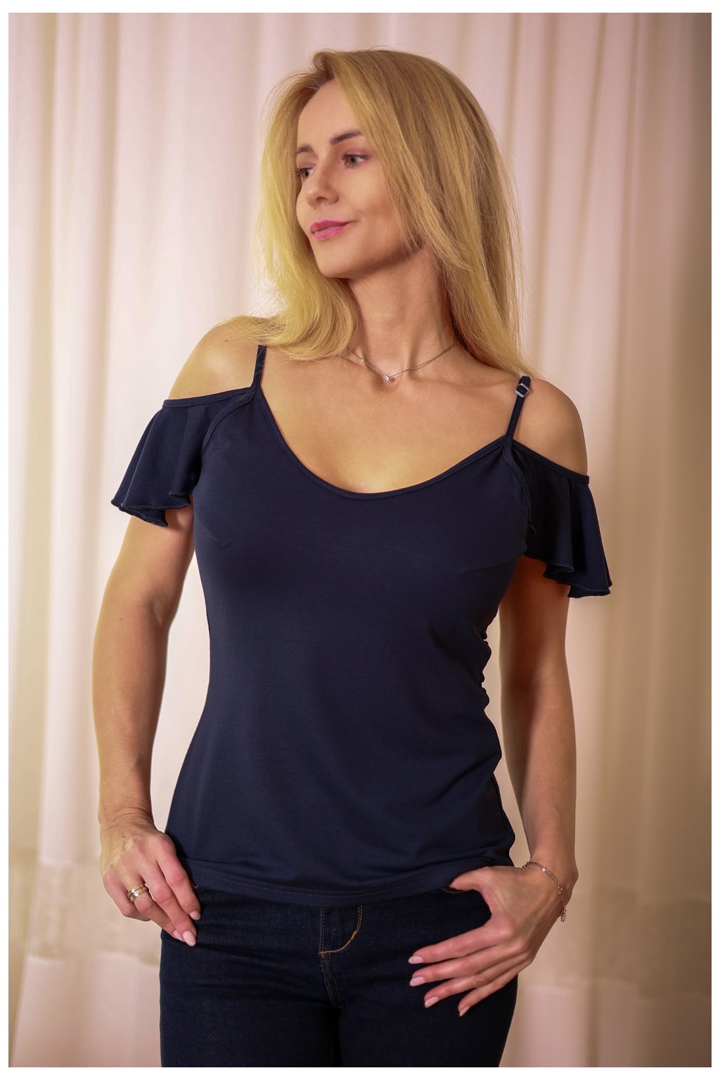 Vera je viskózová top na ramínka v romantickém stylu. K dispozici ve čtyřech barvách. Volánky na ramenou místo klasických rukávů jí dodávají lehkost a charakter. Příjemný na dotek dýchající materiál je skvělou volbou na horké dny. Top Vera bude ladit jak s džínovými kraťasy, tak s dlouhou sukní v boho stylu.