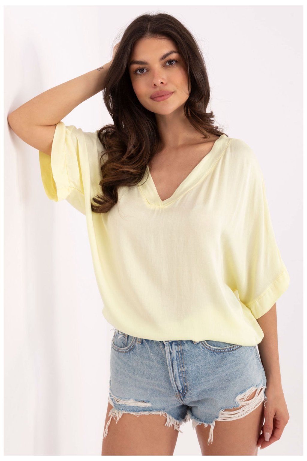 Každodenní košile ve stylu casual je univerzální volbou pro mnoho outfitů. Vyrobená z měkkého, prodyšného viskózu, poskytuje pohodlí po celý den. Hladká látka jí dodává klasický a nadčasový charakter, ideální pro každodenní nošení do práce, na procházku nebo setkání s přáteli. Model s standardní délkou, s rukávem 3/4 a výstřihem do V, který jemně zdůrazňuje linii krku. Jednoduchý, a zároveň elegantní se skvěle hodí jak k džínům, tak ke sukní.