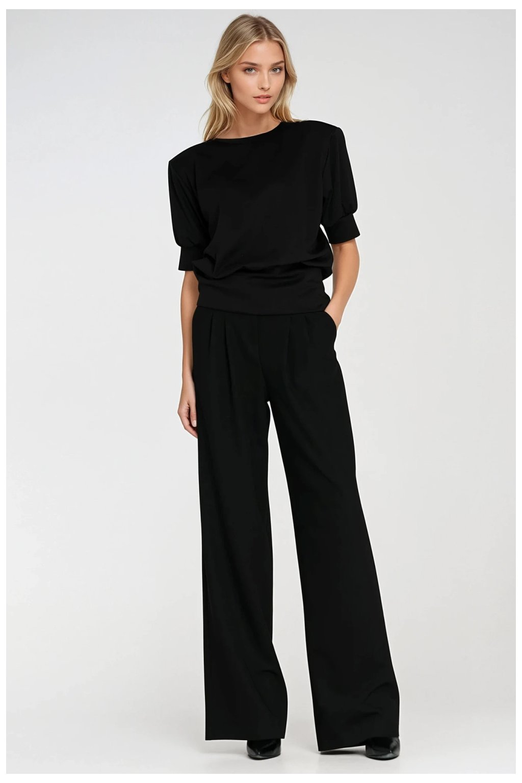 Stylová dámská blůza ve stylu oversize je ideální kombinací volnosti a stylu. Má kulatý výstřih a krátké rukávy s jemným roucháním na manžetách, co dodává lehkost a dívčí charakter. Blůza se obléká přes hlavu a spodek zakončený vysokým lemem umožňuje snadné přizpůsobení postavě a zajišťuje pohodlí při nošení. Díky volnému střihu se hodí jak do každodenních, volnočasových outfitů, tak do módních kombinací.