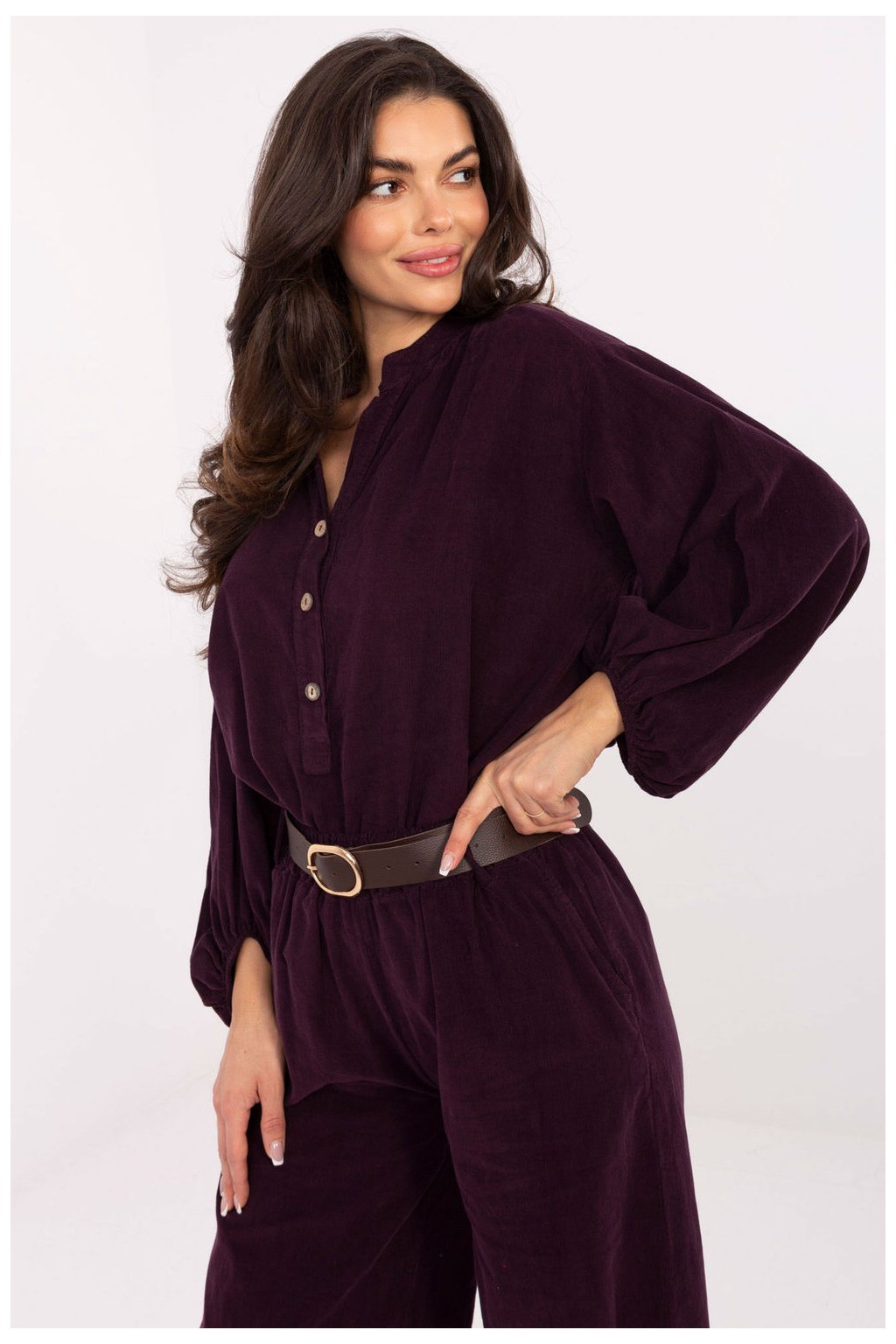 Elegantní košilová halenka v casual stylu, ideální na každý den. Vyrobená z lehkého a příjemného polyesteru, poskytuje pohodlí po celý den. Model má dlouhé nadýchané rukávy, které přidávají jemnou lehkost a ženský charakter. Výstřih ve tvaru srdce s jemným stojánkem krásně zdůrazňuje krk, a zapínání na knoflíky do poloviny délky usnadňuje oblékání a dodává celku elegantní finiš. Halenka v hladké, jednotné barvě a standardní délce skvěle ladí jak s džíny, tak s sukněmi, vytvářející každodenní, stylový vzhled.