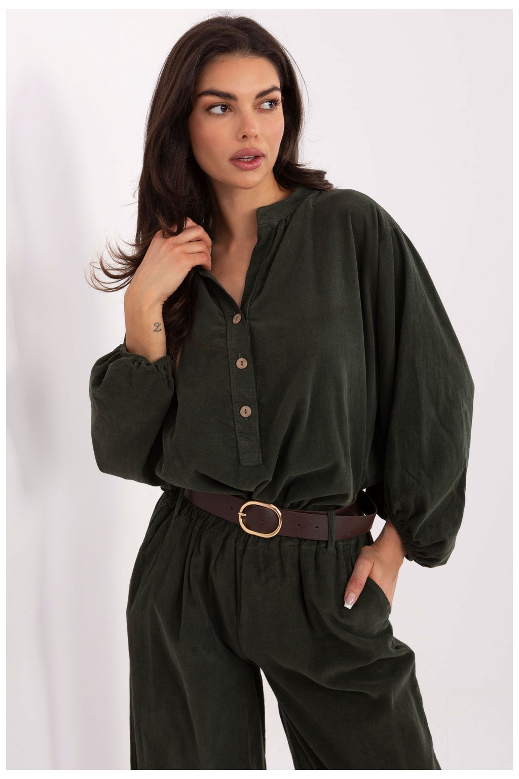 Elegantní košilová blůza v casual stylu, ideální na každý den. Vyrobená z lehkého a příjemného polyesteru, poskytuje pohodlí po celý den. Model má dlouhé, nadýchané rukávy, které dodávají jemnou lehkost a ženský charakter. Výstřih ve tvaru srdce s jemným límcem krásně zdůrazňuje krk, a zapínání na knoflíky do poloviny délky usnadňuje oblékání a dodává celku elegantní dokončení. Blůza v hladké, jednotné barvě a standardní délce skvěle ladí jak s džíny, tak s sukni, tvoříc každodenní, módní vzhled.
