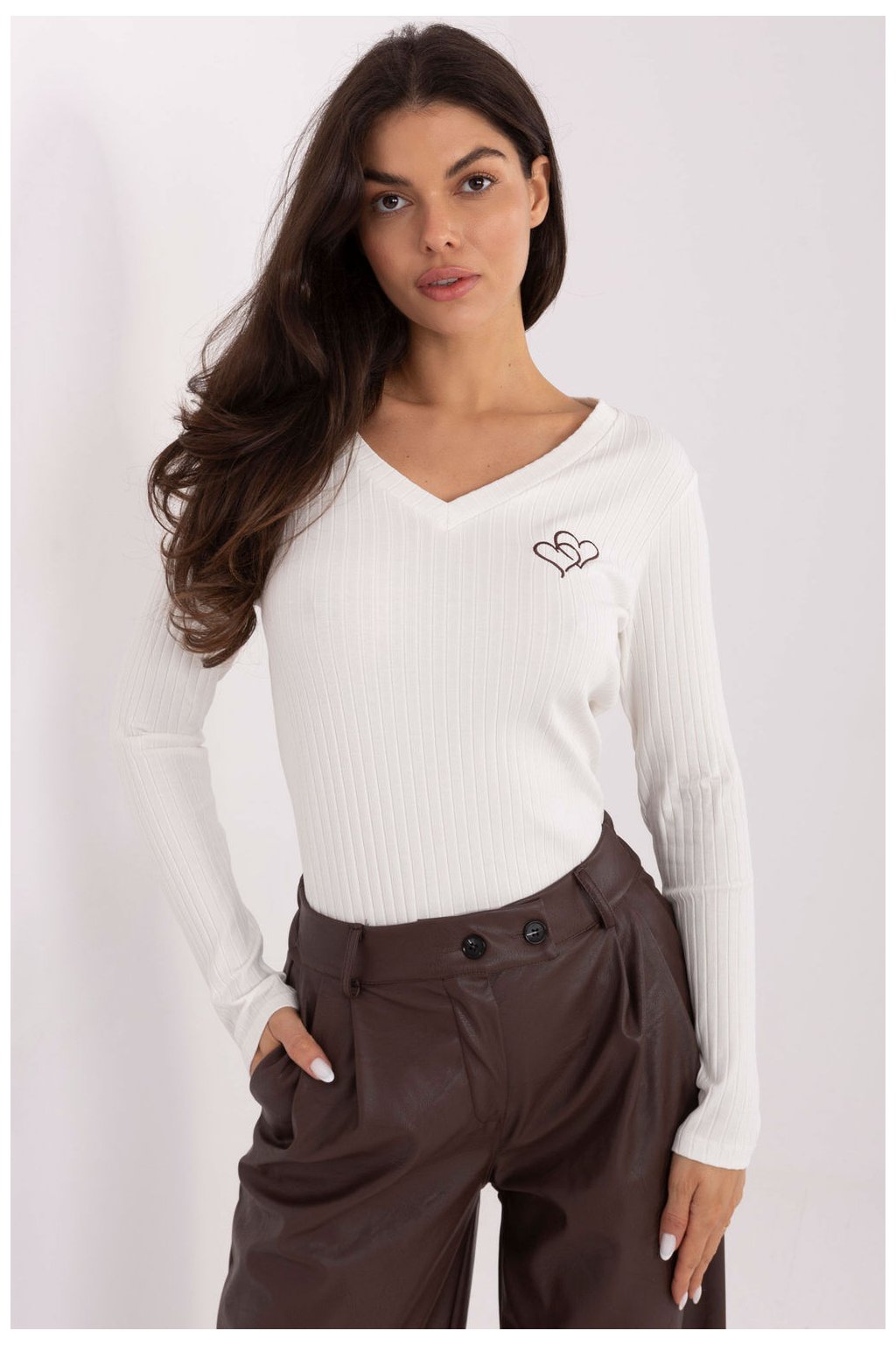 Elegantní a ženská halenka z pruhované látky, ideální na každý den. Vyrobená z příjemné bavlny s přídavkem elastanu, skvěle se přizpůsobuje postavě, zdůrazňuje její výhody a zároveň poskytuje maximální pohodlí při nošení. Model s ležérním charakterem má standardní délku, dlouhý rukáv a výstřih do srdce, který jemně zdůrazňuje krk. Vyšívané srdce na úrovni hrudníku dodává halence šarm a výrazně ženský akcent. Halenka nemá zapínání, co podtrhuje její jednoduchý, každodenní styl. Ideální volba pro ležérní outfit k džínám, sukním nebo oblíbeným kalhotám.