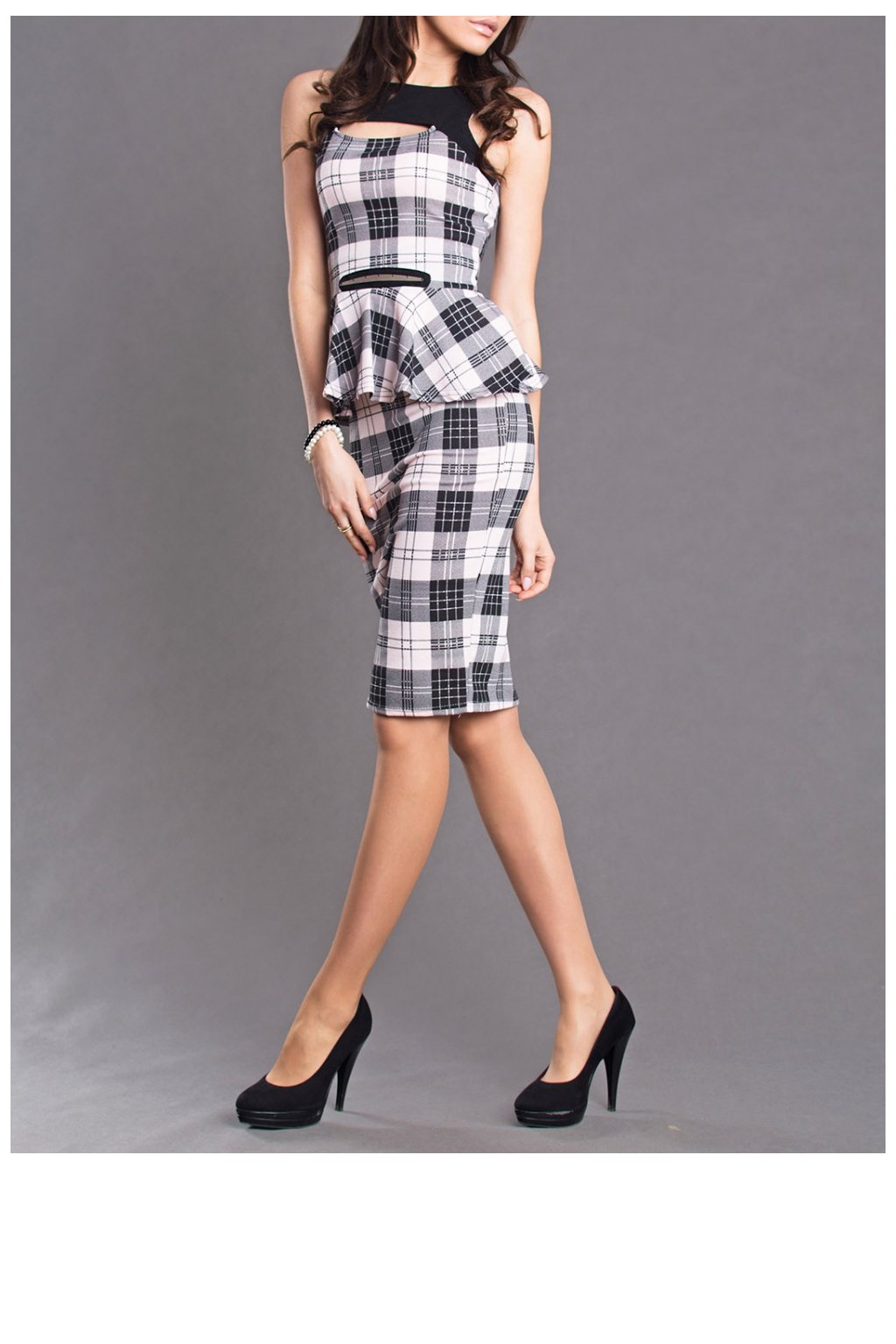 Dámská halenka s kostkou v růžové a černé barvě. Výstřih v barvě černé. Celé to vypadá velmi zajímavě.