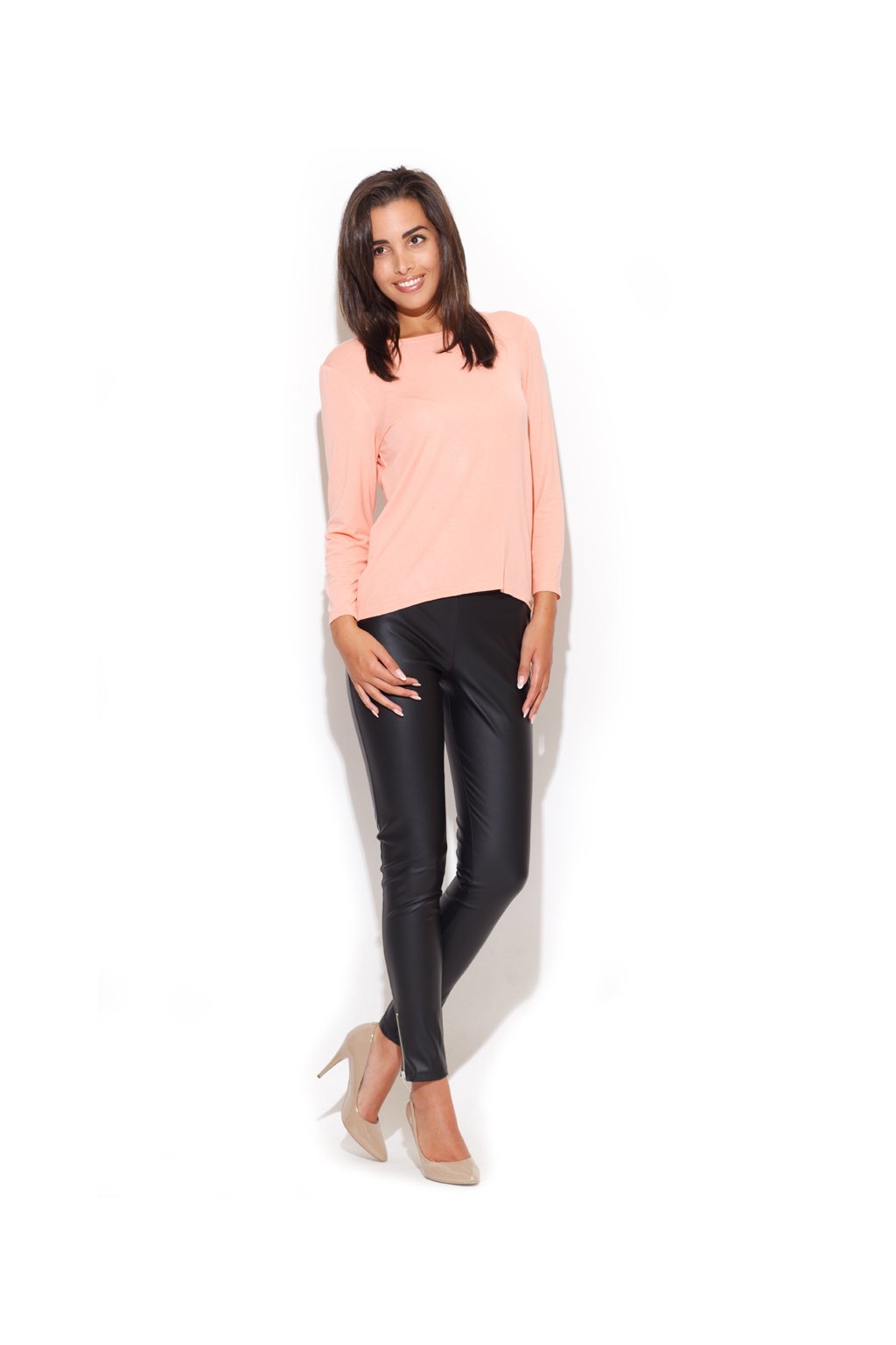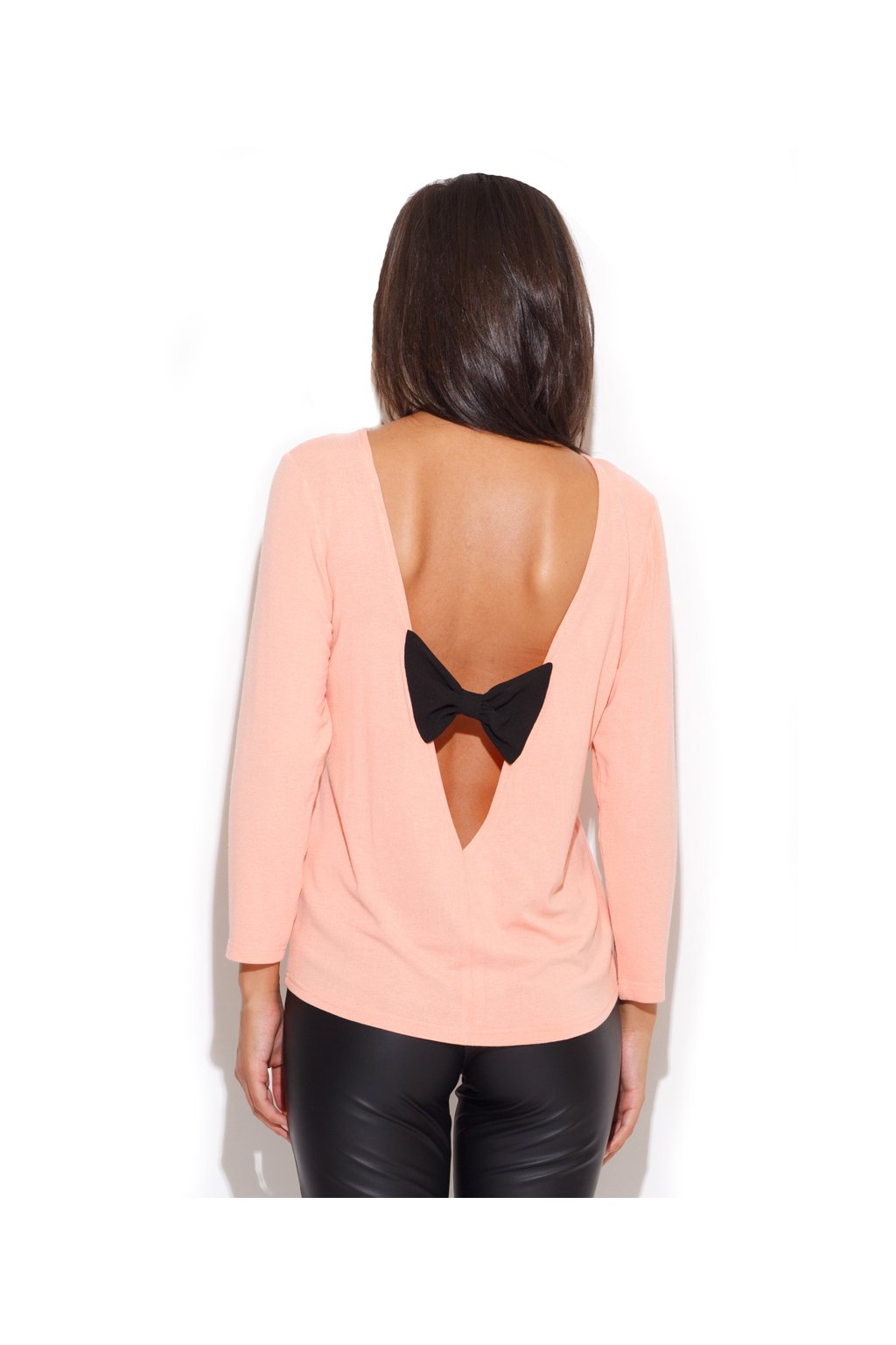 Dámy ženskému halenka s dlouhým rukávem. Přední halenka o něco méně hladký. Za zmínku stojí zpět s hlubokým výstřihem zdobí dívčí luk. Dokonale prezentovány budou obě elegantní džíny a sukně.