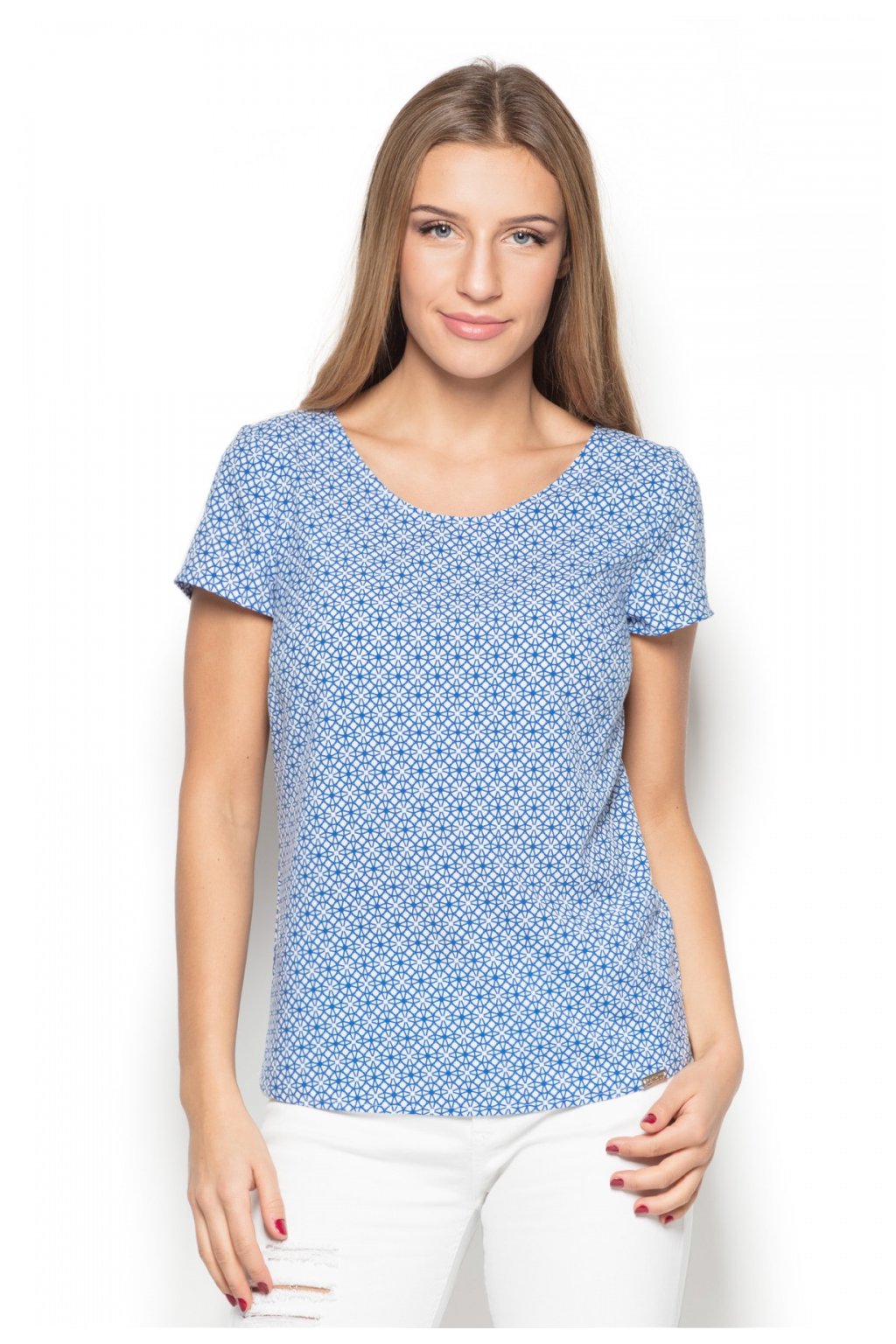 Halenka z látky s jemným geometrickým vzorem a krátkými rukávy. Skvěle se hodí pro mnoho příležitostí.