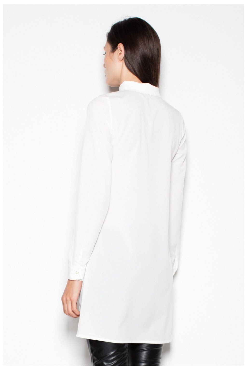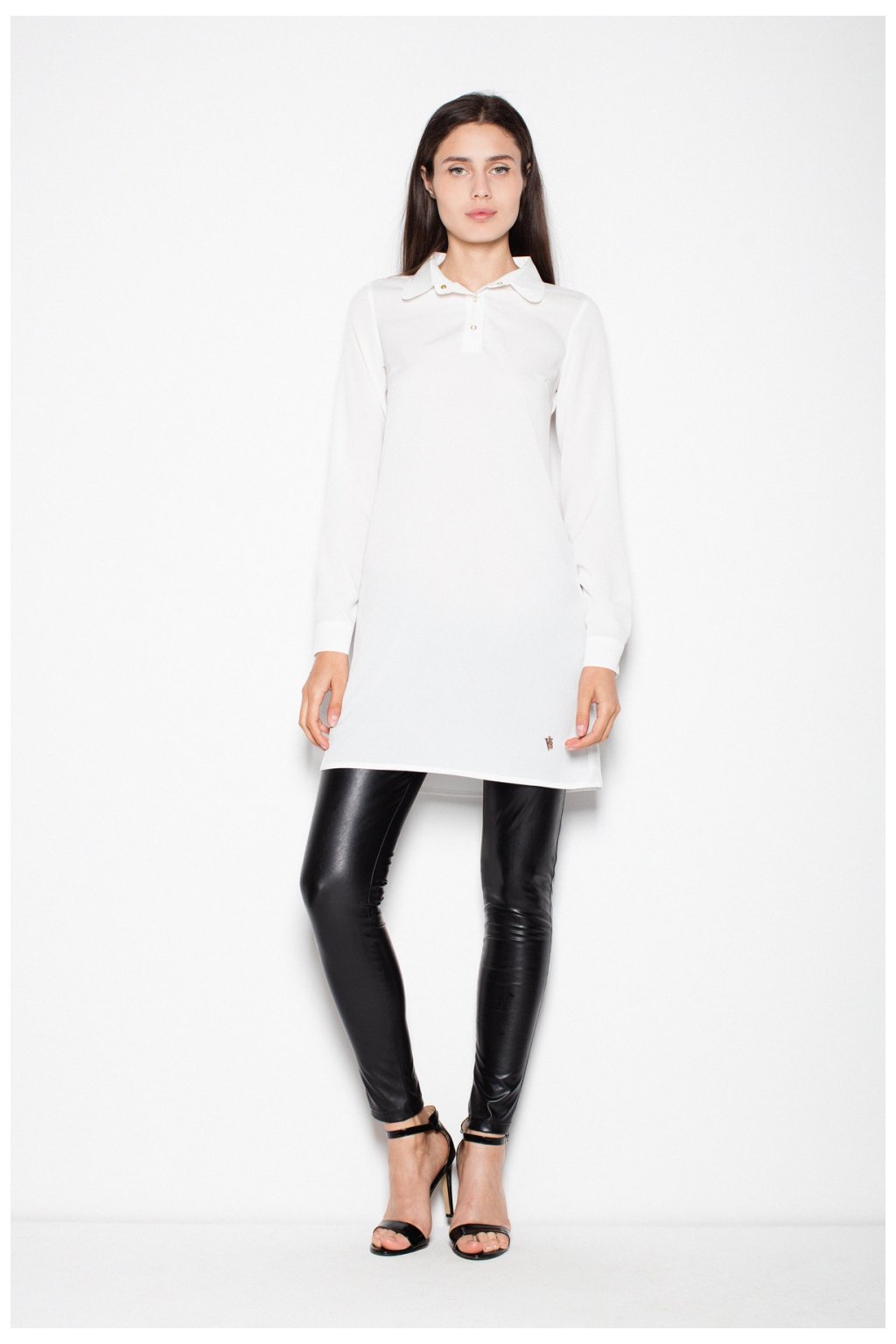 Košilová halenka z lehkého a příjemného úpletu, s dlouhými rukávy a jemným límečkem. Zapíná se na knoflíky u krku. Ideální pro těsné kalhoty.