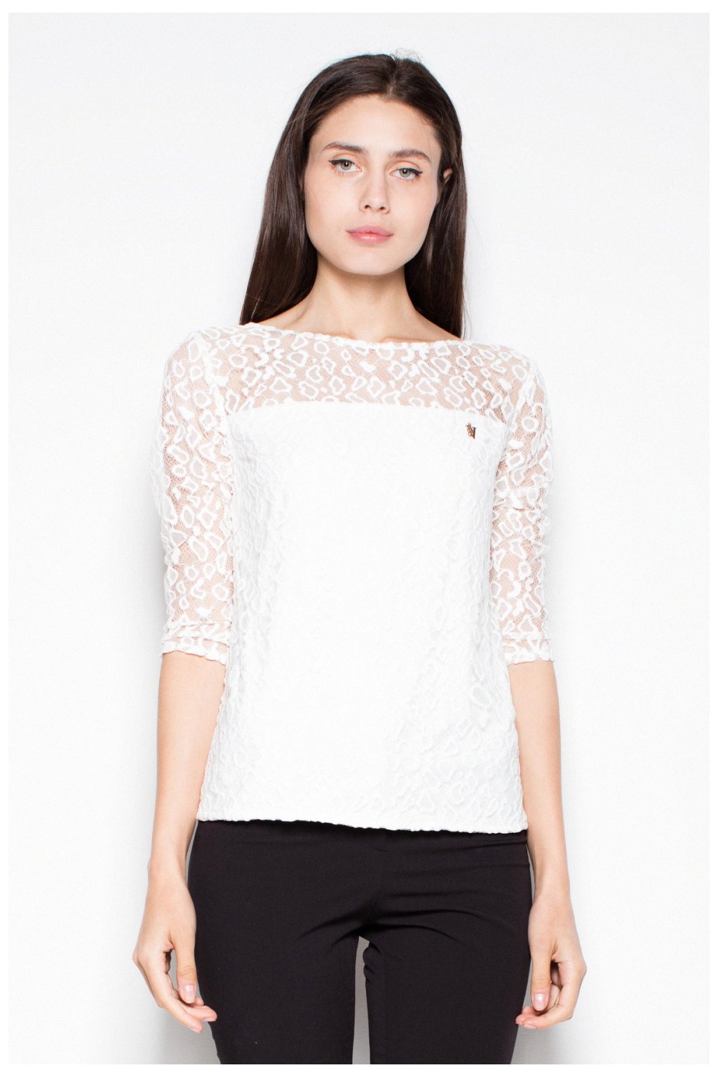 Elegantní halenka s 3/4 rukávy a průhledným horním dílem v charakteristických skvrnách. Skvěle se hodí k jakémukoli oblečení.
