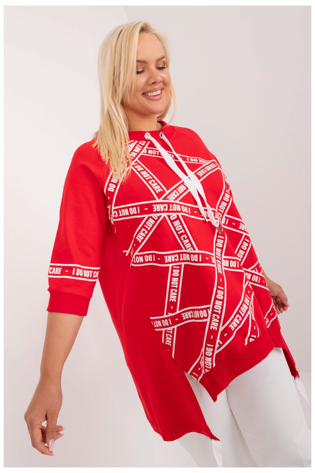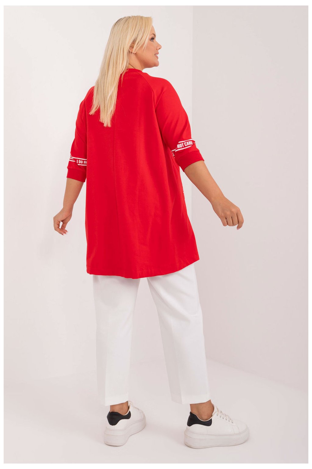 Asymetrická halenka plus size je každodenní kousek s jednoduchým, elegantním střihem, ideální pro každodenní nošení. Je vyrobena z bavlny s přídavkem elastanu, což zaručuje pohodlí a lehký střih. Prodloužený střih a 3/4 rukávy zajišťují volnost pohybu a pohodlí. Halenka má kulatý výstřih, který jí dodává klasický vzhled. Na přední straně je nápis zdobený kamínky, který dodává halence módní a originální charakter. Skvěle se hodí pro každodenní stylizaci, ať už do práce, nebo na běžné vycházky.
