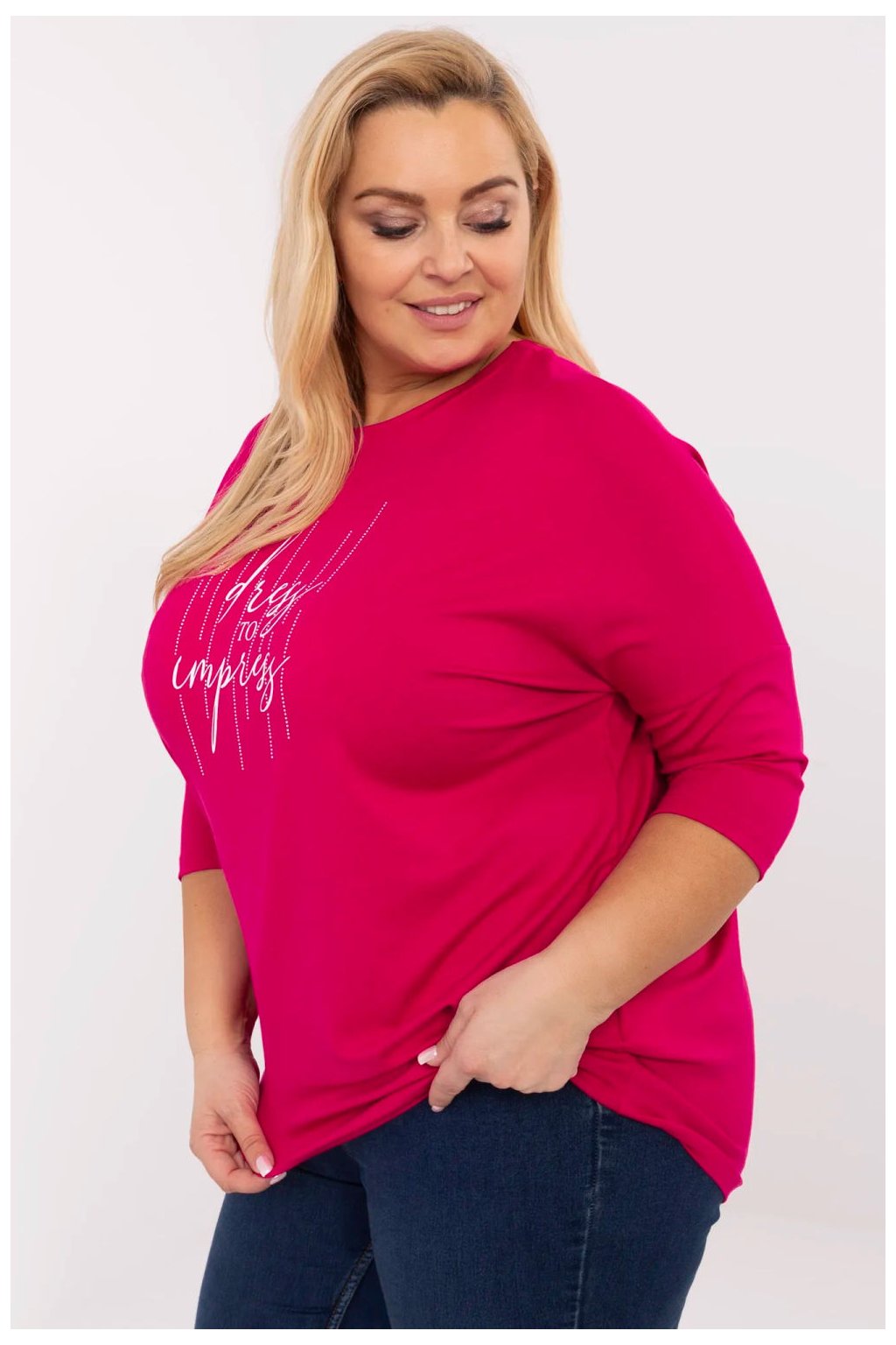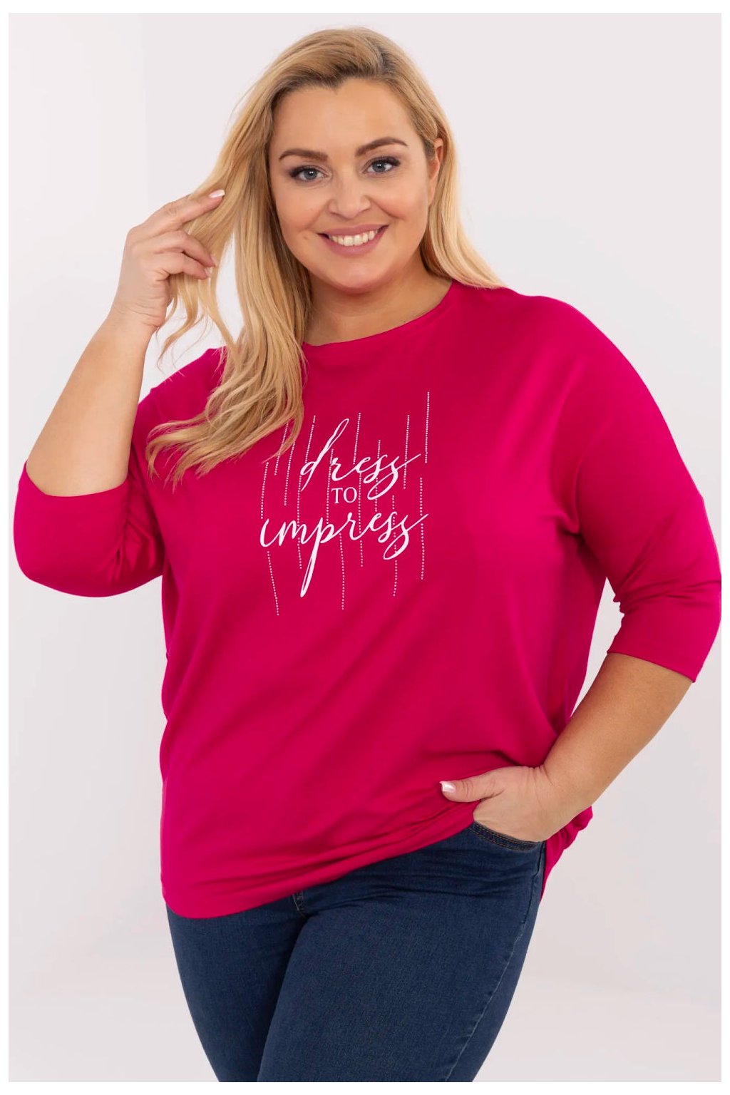 Tento každodenní volný top je ideální volbou pro ženy, které ocení pohodlí a módní detaily. Vyrobený z měkké, elastické látky z viskózy a elastanu, poskytuje pohodlí nošení a skvělé přizpůsobení postavě. Standardní délka a klasický kulatý výstřih dělají top skvěle ladící s džínami, legíny nebo sukní. Ozdobné nápisy s aplikací z třpytek mu dodávají výrazný charakter a trochu lesku. Model bez zapínání, pohodlný a snadný na oblékání.