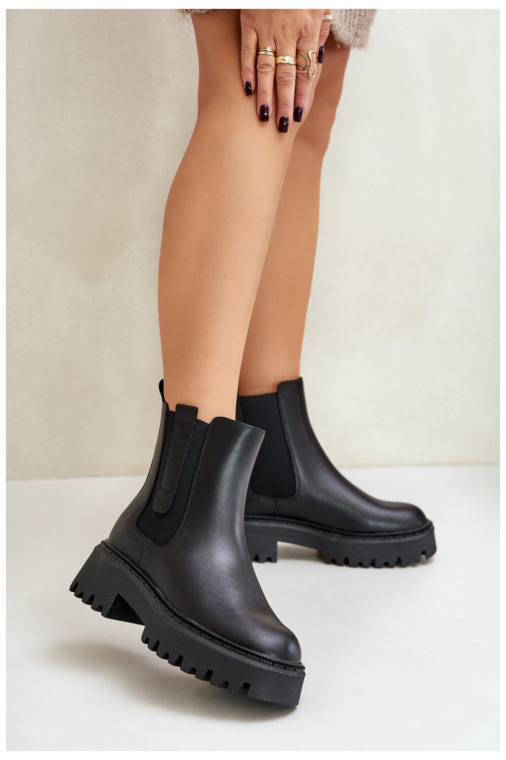 Zasunovací boty značky Big Star skvěle padnou k mnoha outfitům! Vyrobeny z přírodní kůže. Mají plochý podpatek a platformu s běhounem. Vnějšek je vyložen koženým materiálem pro další teplo. Zaoblené špičky a elastické vložky na hřbetu jsou jejich charakteristické rysy. Navíc má tento model zpevněnou patu.