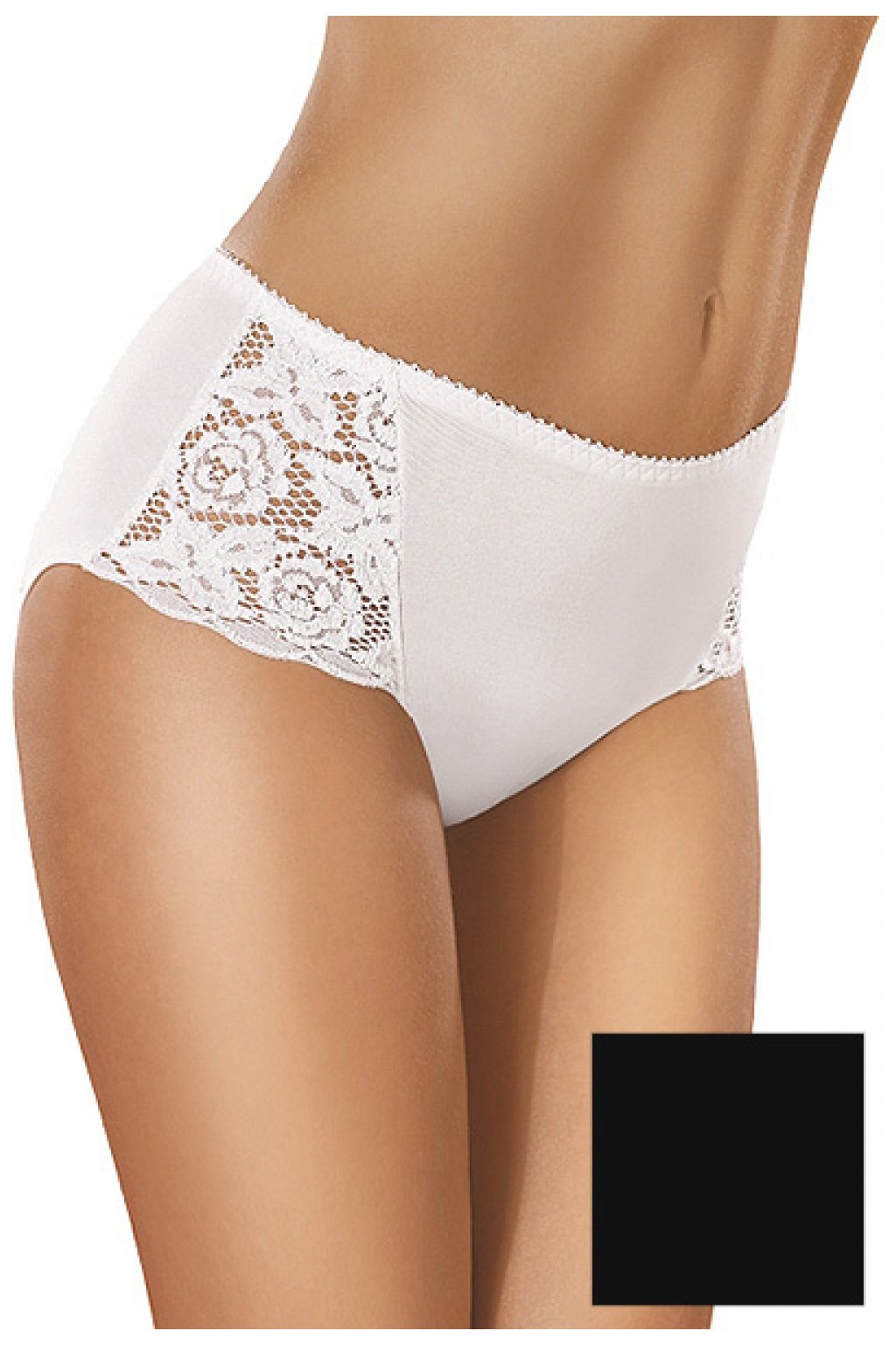 Bavlněné plné kalhotky v černé barvě s mírně zvýšeným pasem. Jemné vsadky z vkusné krajky na obou stranách. Dokonale přilnou k tělu a poskytují pocit pohodlí a komfortu. V prodeji v černé barvě.