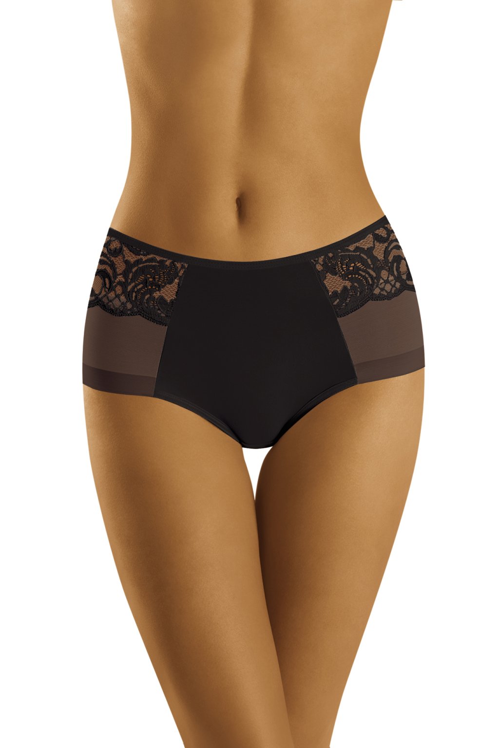 Krásné, ženské kalhotky vyrobené z kombinace jemné síťoviny, krajky a hladkého mikrovlákna. Mírně plnější řez, úhledně prezentovaný.
