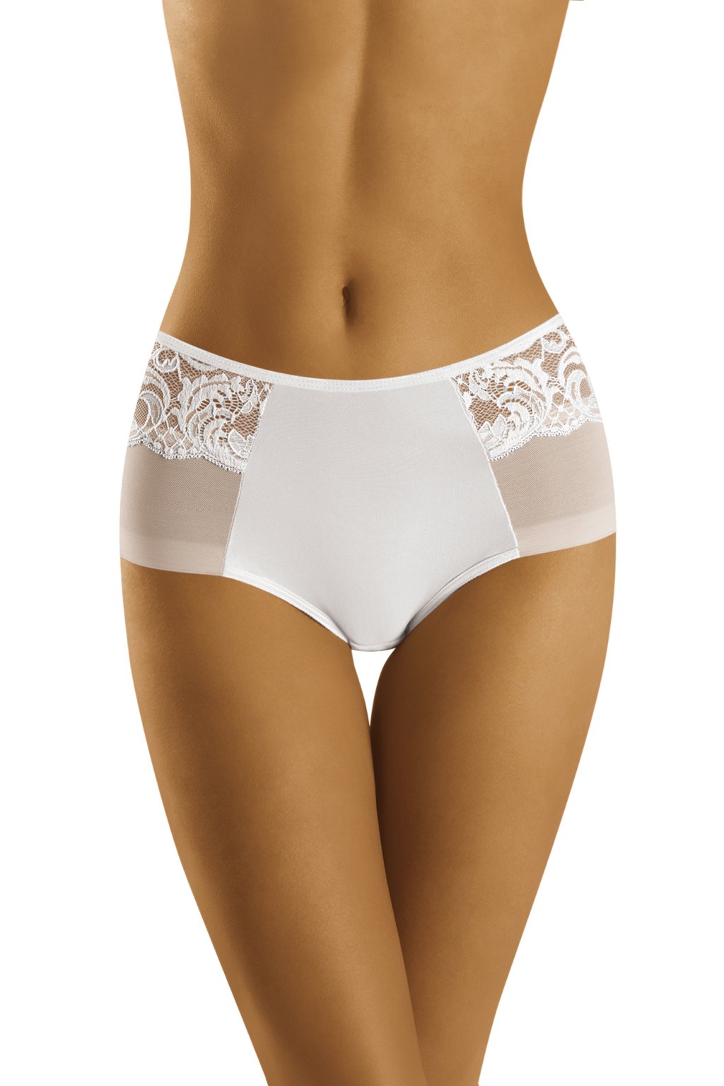 Krásné, ženské kalhotky vyrobené z kombinace jemné síťoviny, krajky a hladkého mikrovlákna. Mírně plnější řez, úhledně prezentovaný.