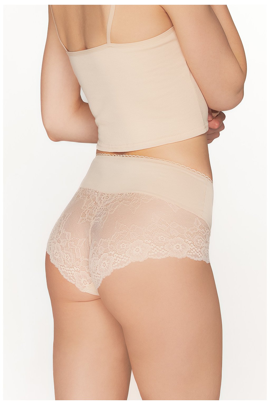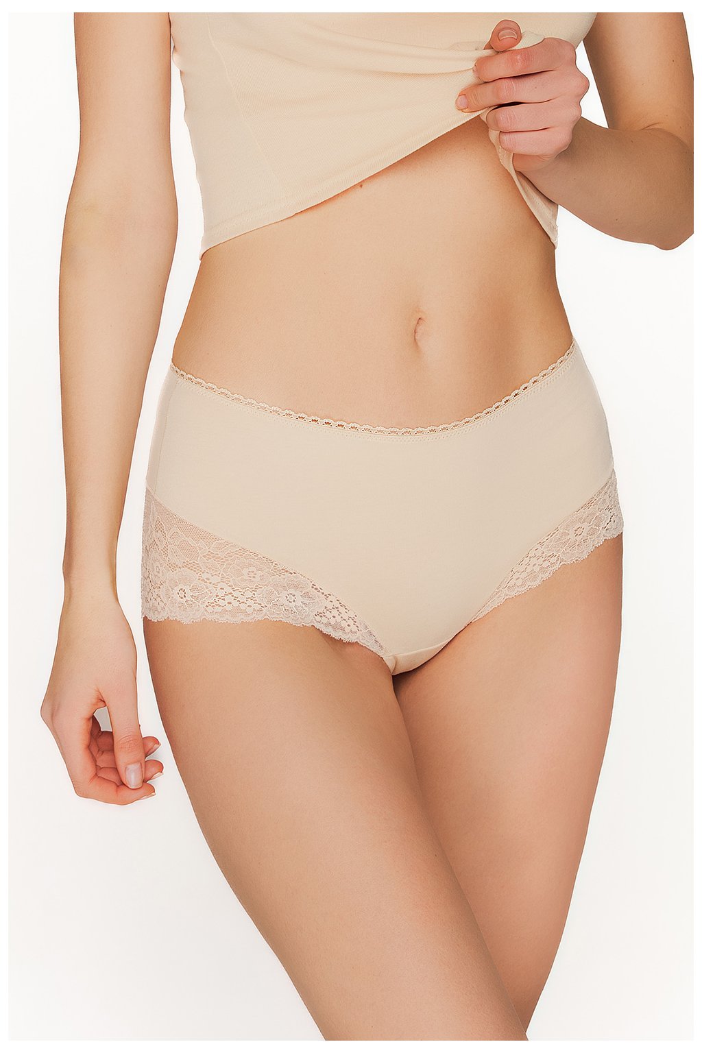 Klasické dámské kalhotky s květinovou krajkou. Jsou vyrobeny z bavlny a v pase mají elegantní elastický pásek. Krajkové doplňky se nacházejí jak na spodní, tak na přední straně kalhotek, díky čemuž vypadají velmi elegantně. Jemné ploché švy kalhotek jsou při každodenním nošení neznatelné. Kalhotky jsou vyrobeny z bavlny, která je nealergická a vysoce absorbuje vlhkost.