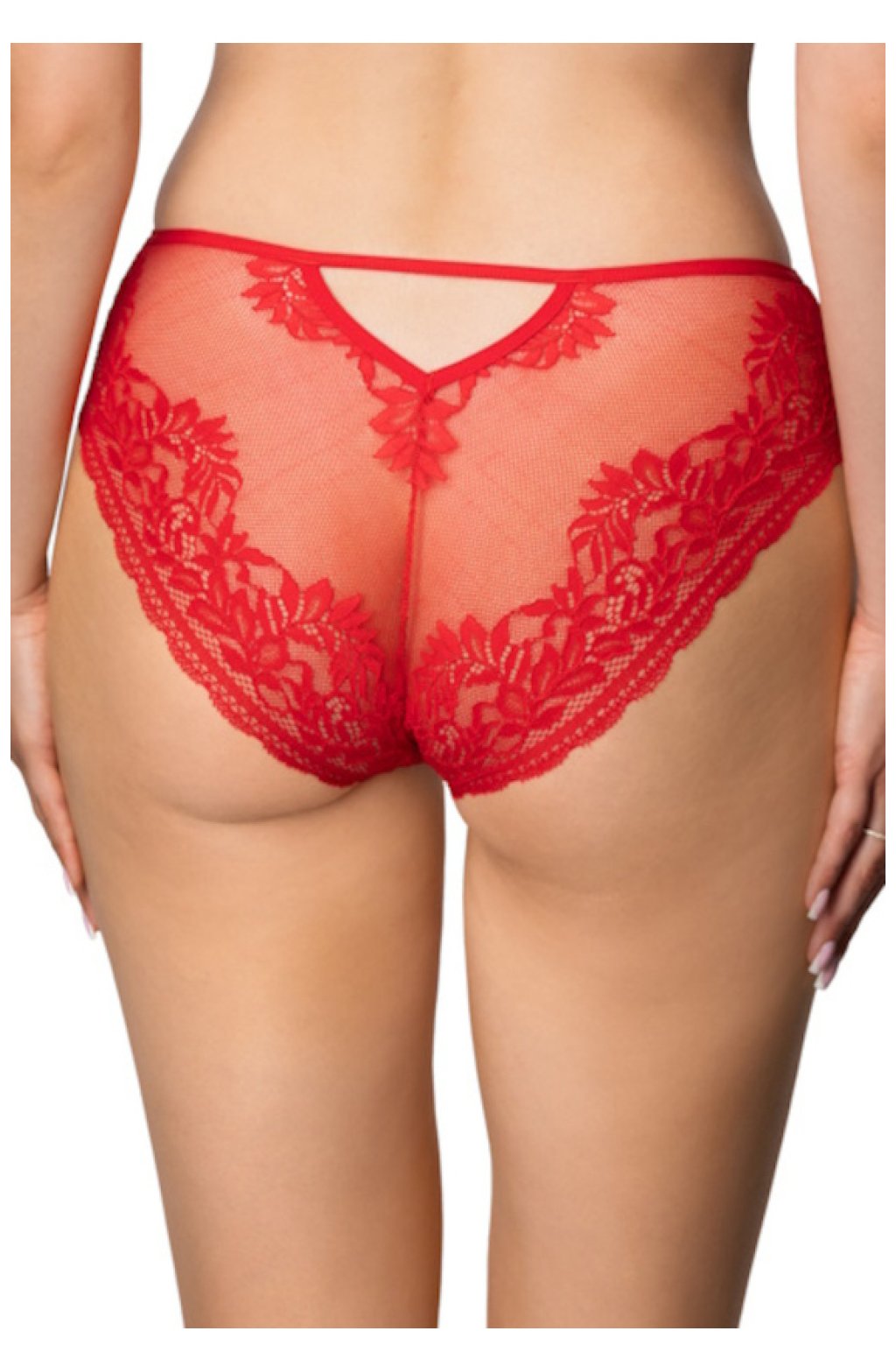 Červené kalhotky Estelle jsou skvělou kombinací elegance, ženskosti a pohodlí. Vyrobené z jemné krajky s květinovým vzorem, zdůrazňují ženské tvary a dodávají jim smyslný charakter. Přední část je zdobena jemnou síťkou, která dodává lehkost a romantický šarm. Zadní část kalhotek je zdobena dekorativním výstřihem a krajkovými vložkami, které přidávají hravost a vystavují postavu atraktivním způsobem. Precizně vybrané materiály zajišťují vysoký komfort nošení a elastický lem se ideálně přizpůsobuje tělu. Kalhotky Estelle jsou prádlo, které splňuje veškerá očekávání moderních žen, je jak krásné, tak pohodlné. Vyberte si je, abyste zdůraznili svou ženskost a cítili se výjimečně každý den!