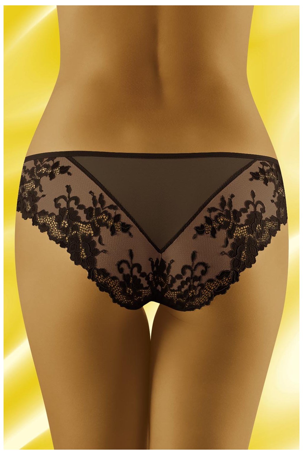 Sexy kalhotky, které krásně zdobí zejména boky. Přední strana je hladká, zadní strana a boky jsou krajkové a květinové. Řez opticky prodlužuje nohy.
