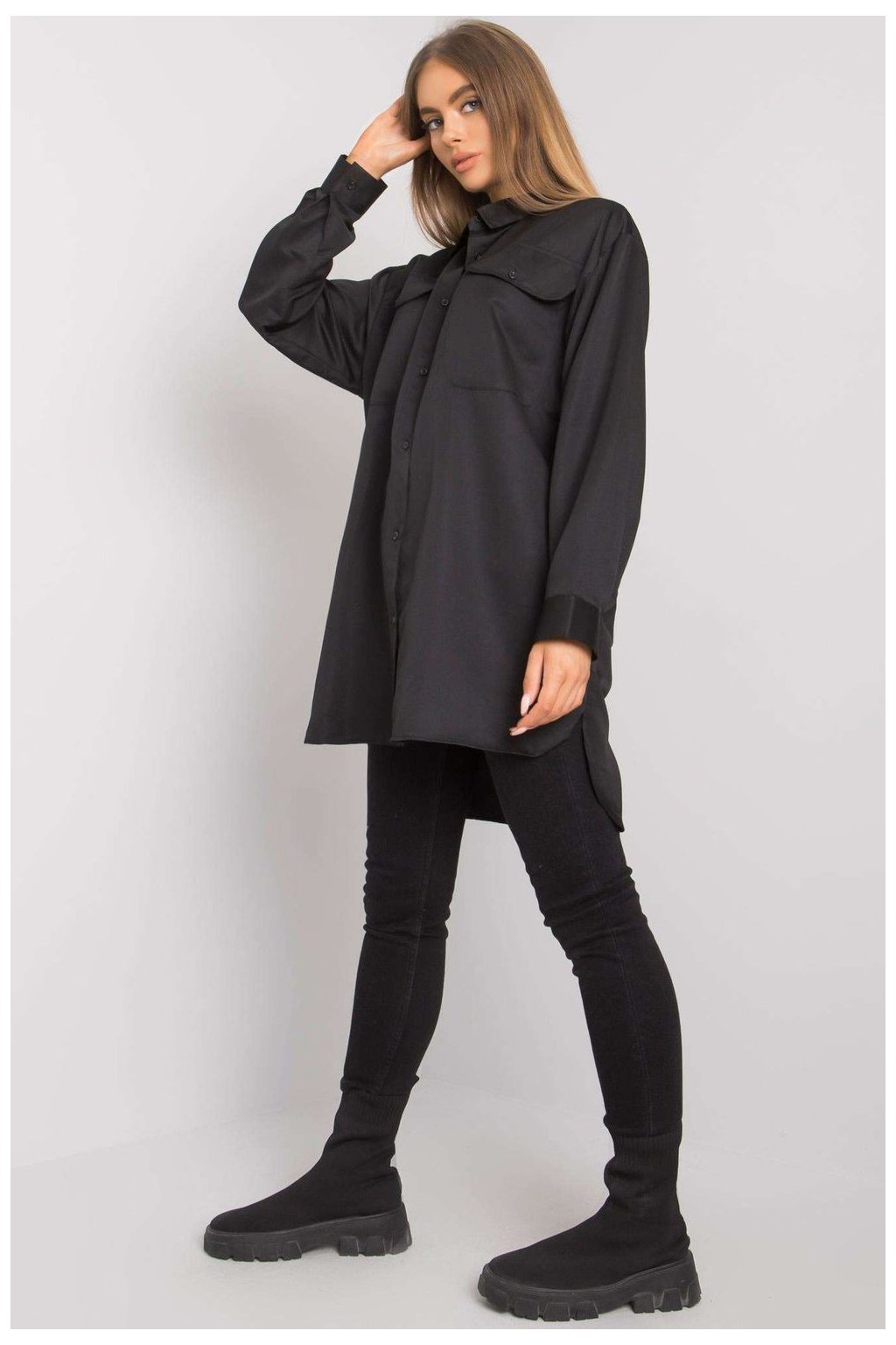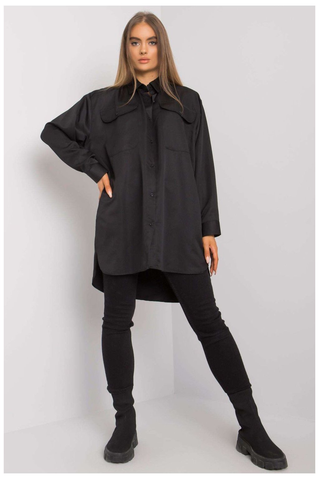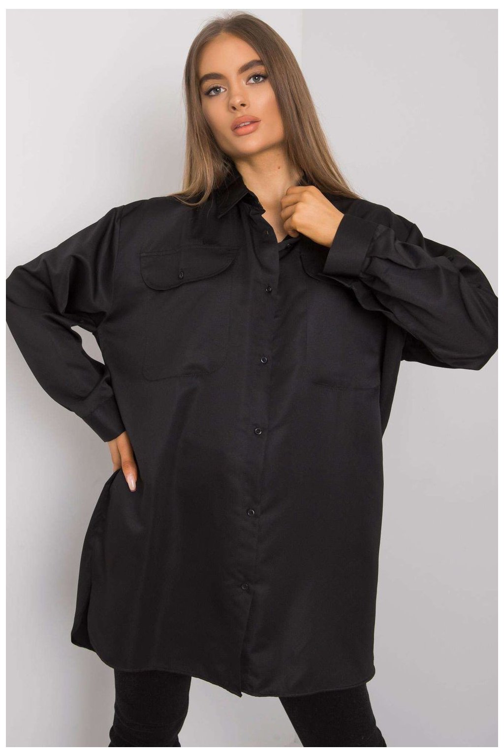 Černé bavlněné dámské tričko s prodlouženým střihem. Košile má zapínání na knoflíky. Kapsy na přední straně. Ideální pro mnoho příležitostí.