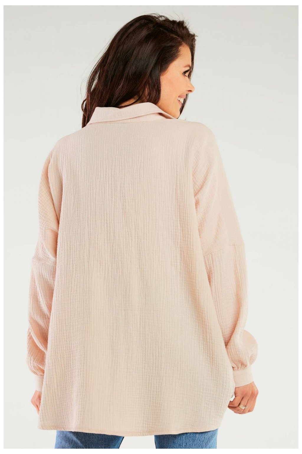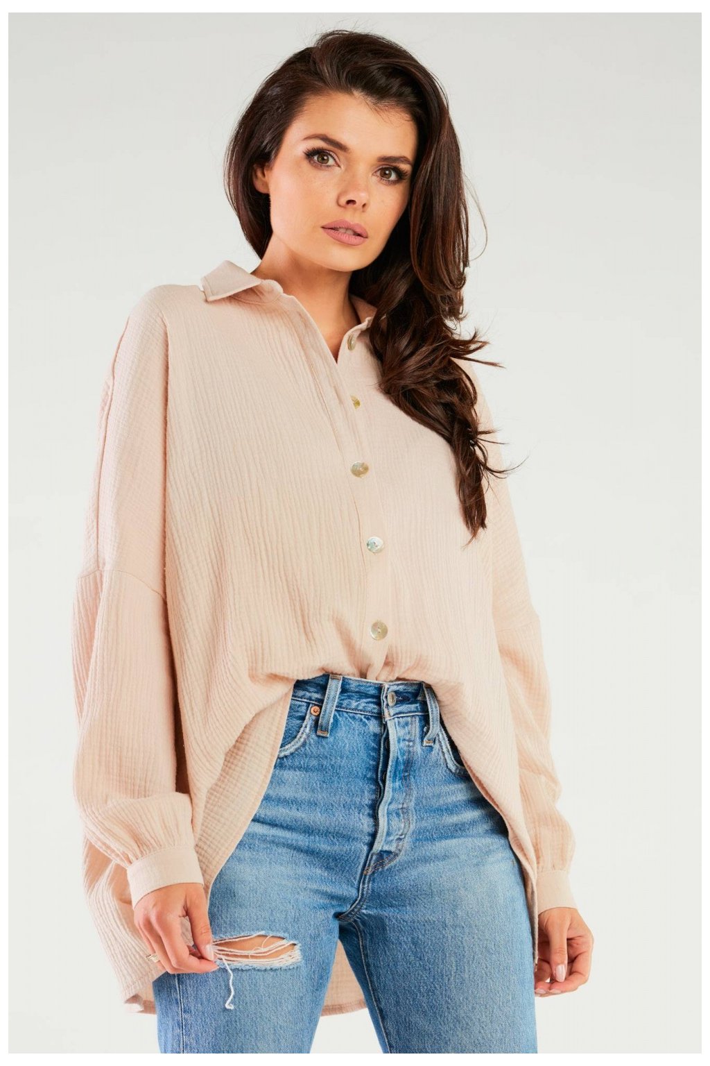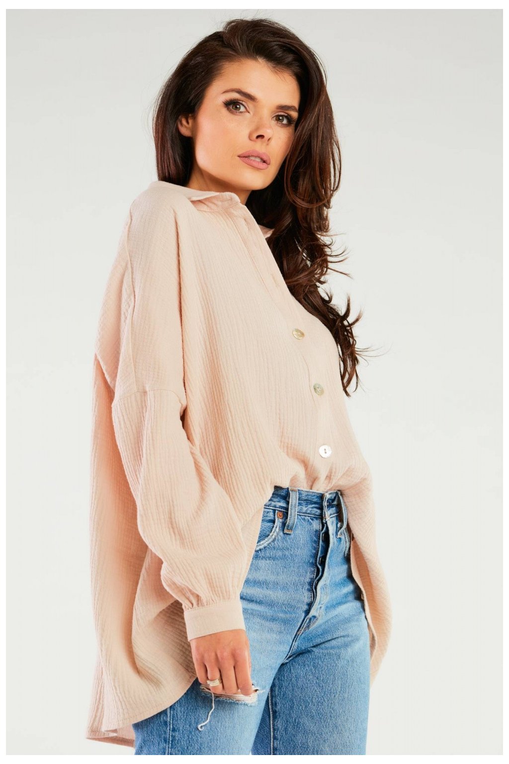 Košile nadměrné velikosti je skutečným must have v ženském šatníku. Model se zapínáním na knoflíky umožňuje upravit hloubku výstřihu podle vašich preferencí. Volný střih zakryje drobné nedostatky postavy a je skvělou alternativou ke klasické košili.| Velikost | Celková délka |