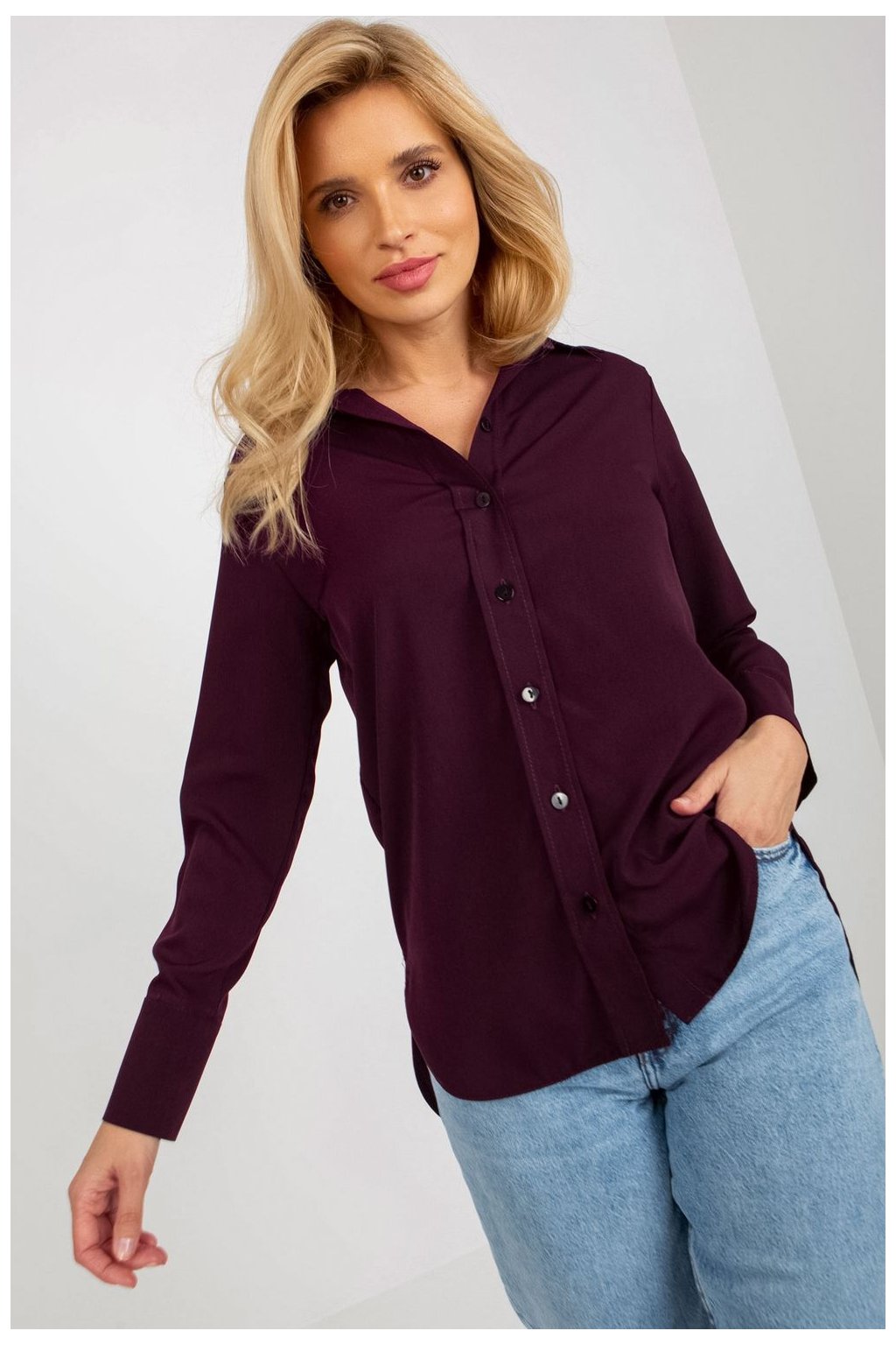Dámská košile na knoflíky s dlouhými rukávy. Návrh ideální pro mnoho příležitostí.