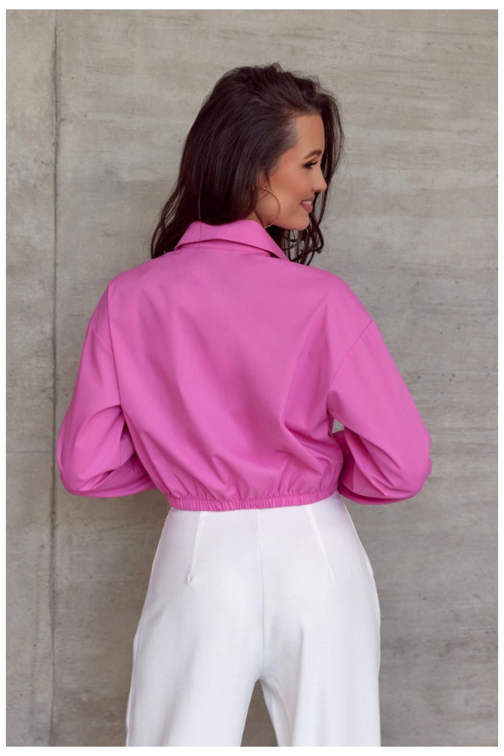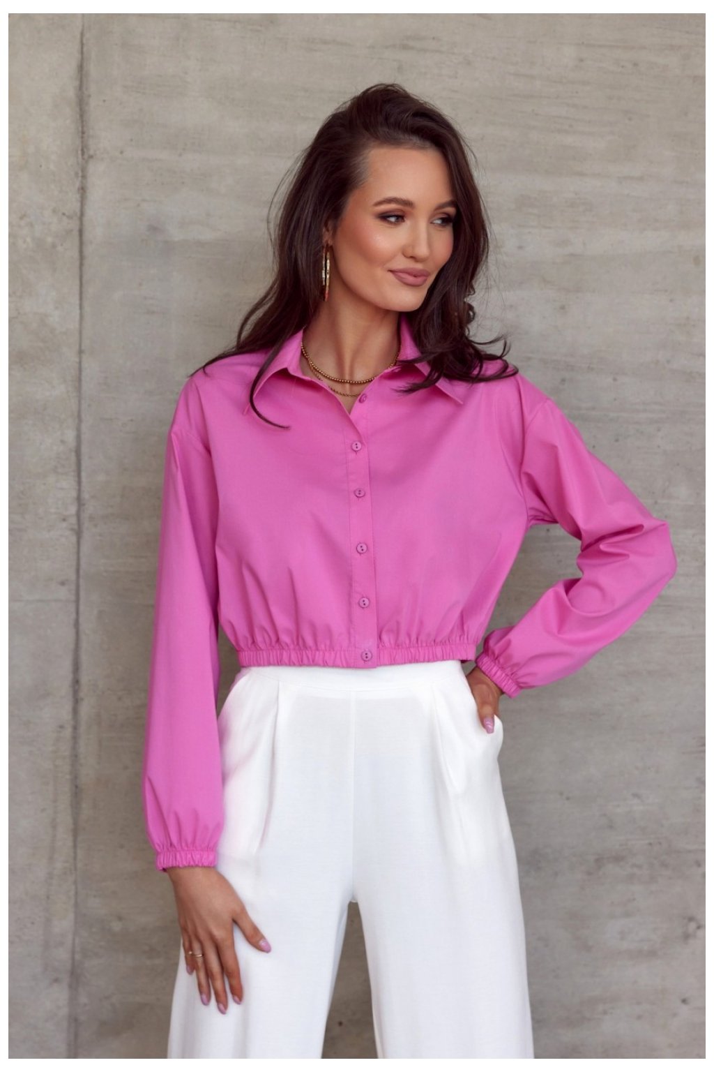 Košile se zapíná vpředu na knoflíky a má nastavitelný výstřih. Klasický stojáček jí dodává šarm. Ve spodní části a na zápěstí je obohacena o nápadné žebrování v podobě gumy. Gumička ve spodní části zužuje pas, zvýrazňuje pas a jemně podtrhuje siluetu. Košile je vyrobena z velmi kvalitního materiálu a příjemně se nosí, je skvělým doplňkem prakticky každého dámského ležérního i formálního stylingu. Výrobek je vyroben a ušit v Polsku.