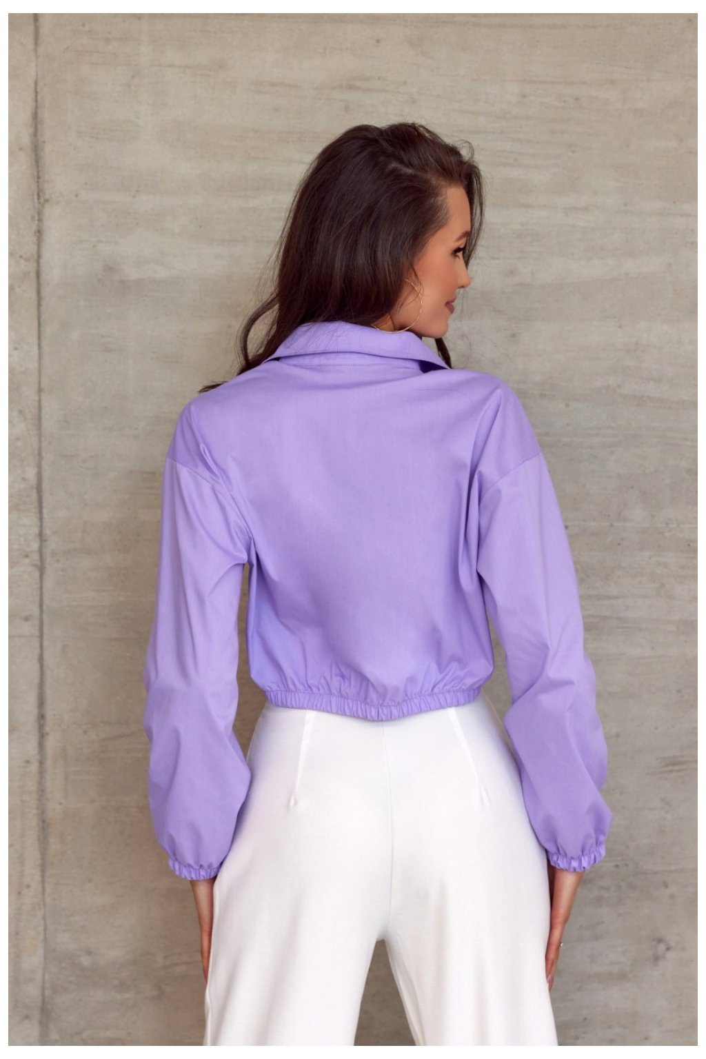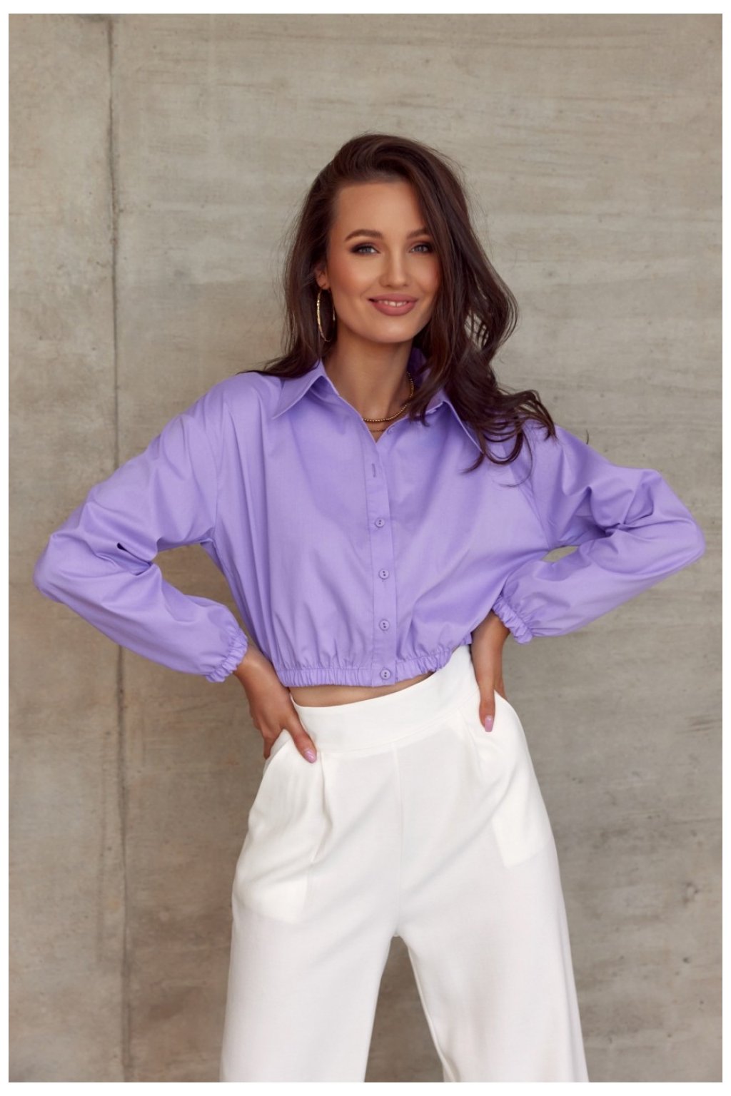 Košile se zapíná vpředu na knoflíky a má nastavitelný výstřih. Klasický stojáček jí dodává šarm. Ve spodní části a na zápěstí je obohacena o nápadné žebrování v podobě gumy. Gumička ve spodní části zužuje pas, zvýrazňuje pas a jemně podtrhuje siluetu. Košile je vyrobena z velmi kvalitního materiálu a příjemně se nosí, je skvělým doplňkem prakticky každého dámského ležérního i formálního stylingu. Výrobek je vyroben a ušit v Polsku.