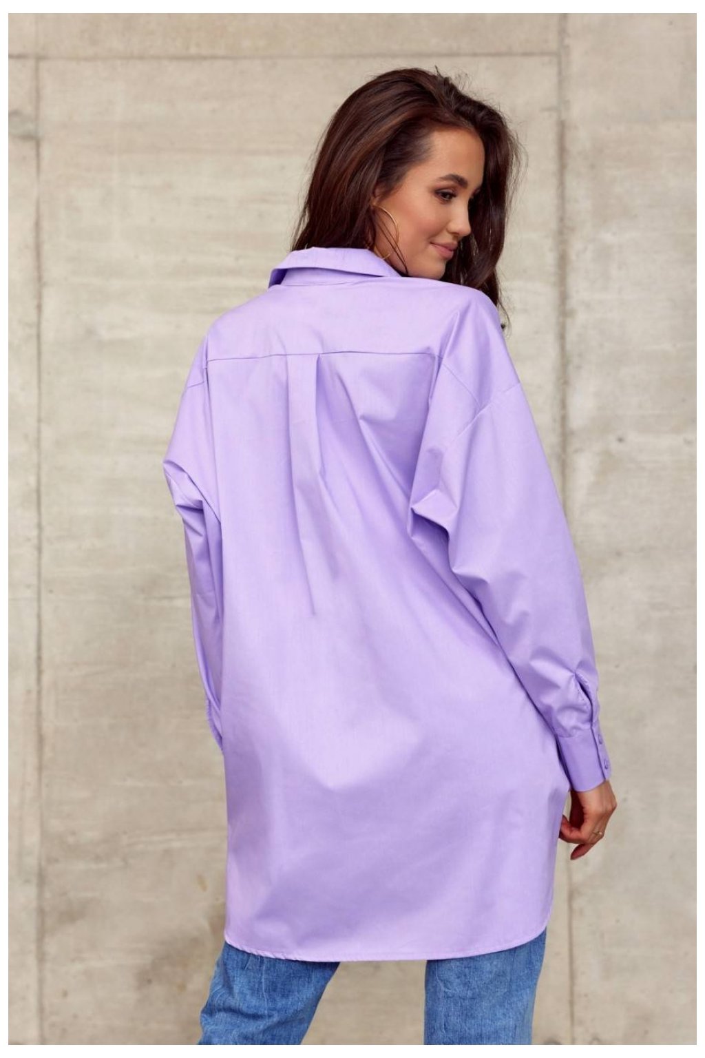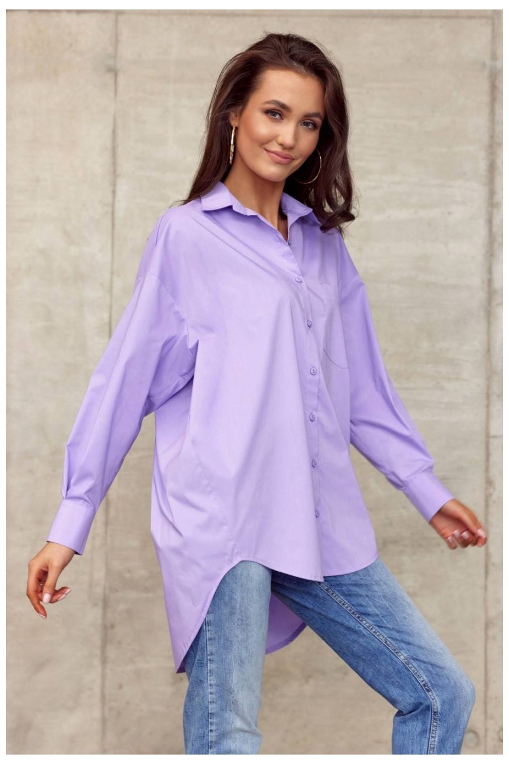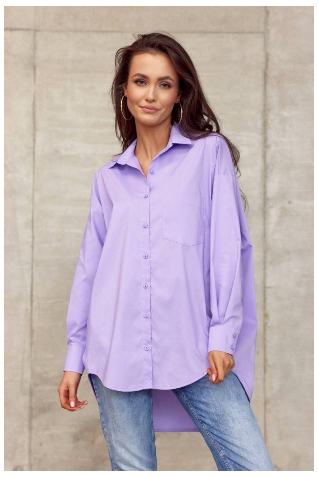 Dámská košile má oversized střih, který zakryje všechny nedokonalosti. Kratší přední díl a delší zadní díl jí dodávají skvělý asymetrický nádech. Košile je vyrobena z vysoce kvalitní tkaniny, která jí umožní dlouhou životnost. Dále je doplněna estetickým límečkem, manžetami a zapínáním na přední knoflíky. Knoflíky v barvě výrobku. Bohatá škála barev potěší každého. Výrobek je vyroben a ušit v Polsku.